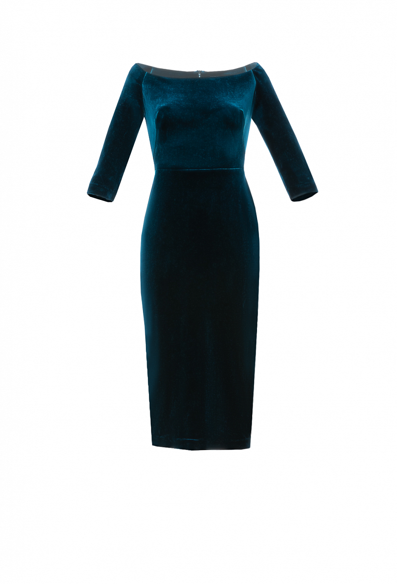 Бархатное платье-футляр с глубоким декольте 09-02-24 FW