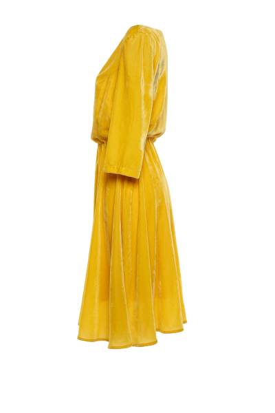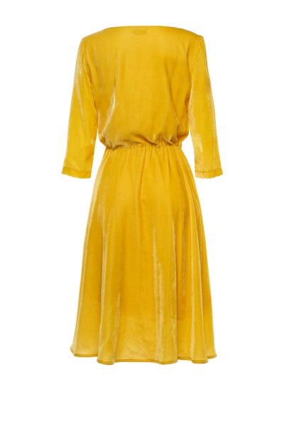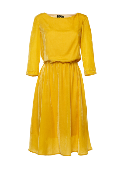 Бархатное платье на резинке по талии, горловина «лодочка», рукав ¾, юбка «клеш»