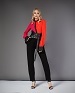 Блуза, воротник стойка, супатная застежка, манжеты по низу рукава, красный, оранжевый, фуксия, черный