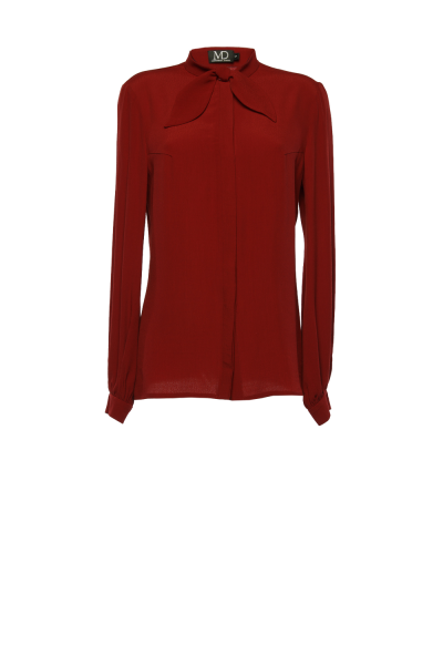Блуза с воротником «стойка» переходящим в бант, супатная застежка
