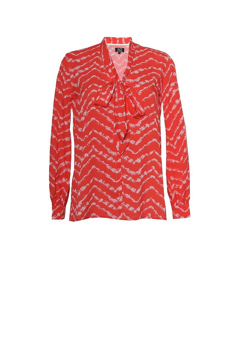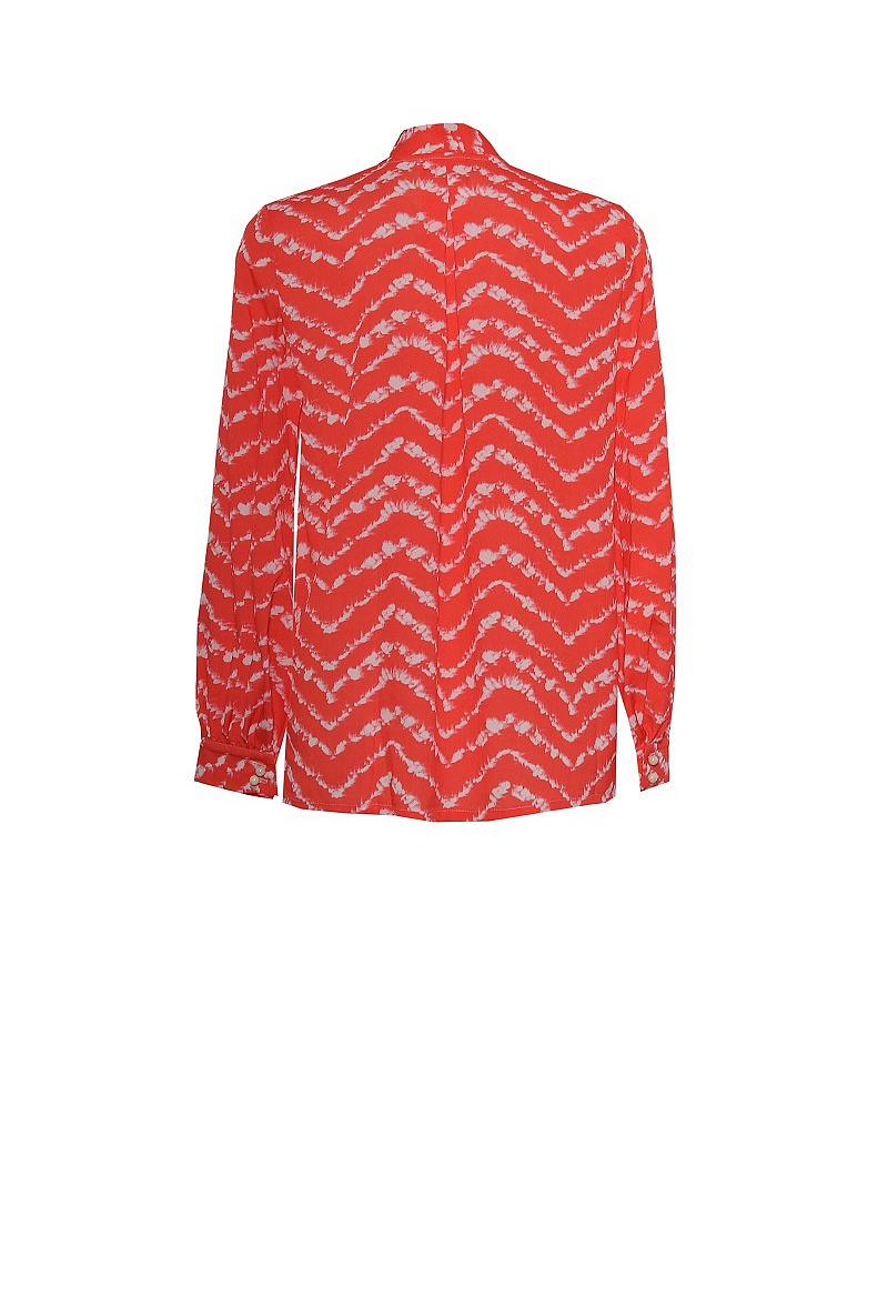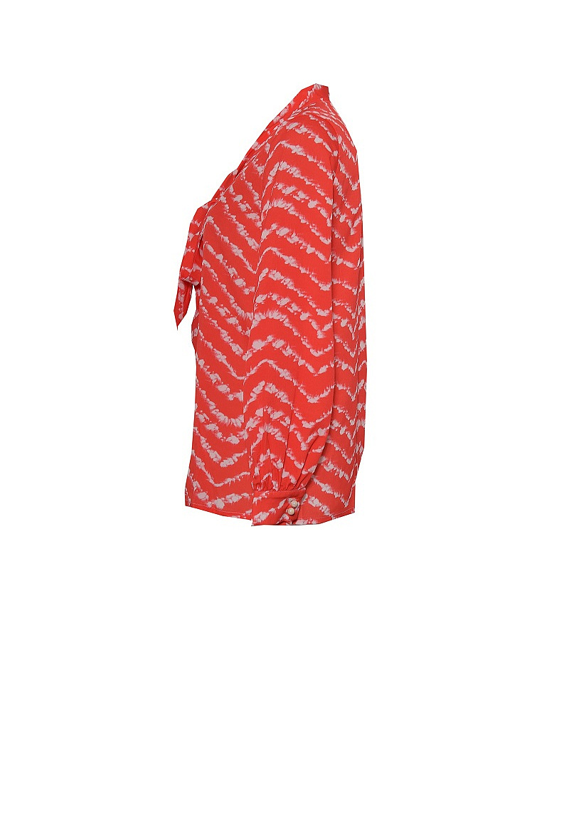 Блуза с длинным рукавом, графическим принтом, планкой и воротником-бантом.