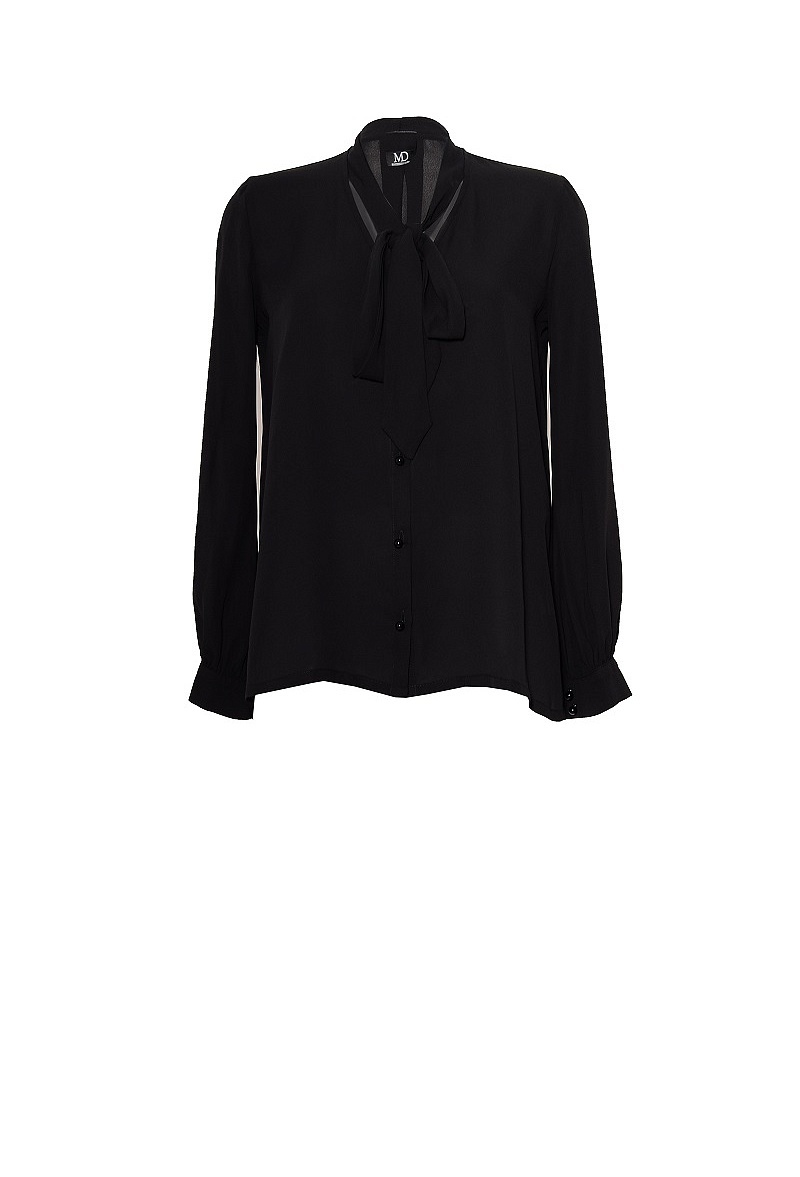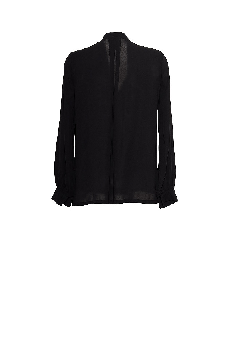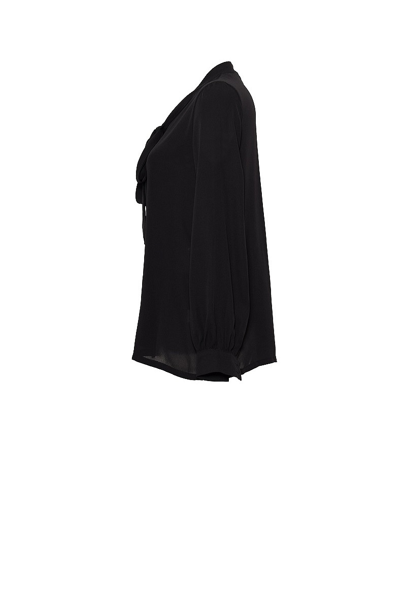 Блуза с длинным рукавом, планкой и воротником-бантом.