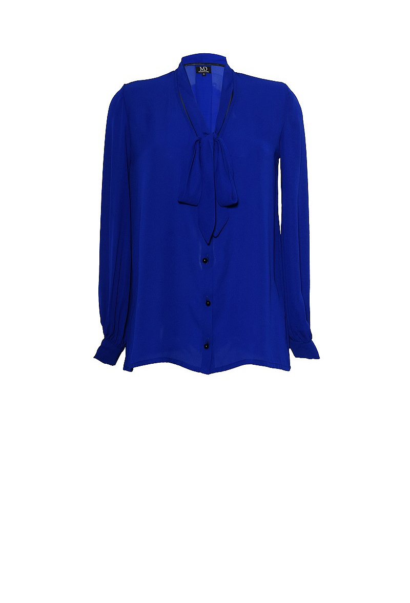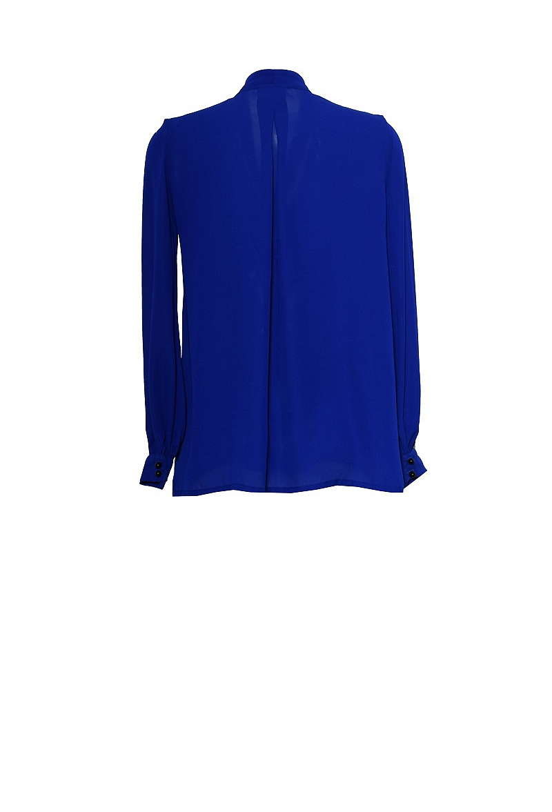Блуза с длинным рукавом, планкой и воротником-бантом.
