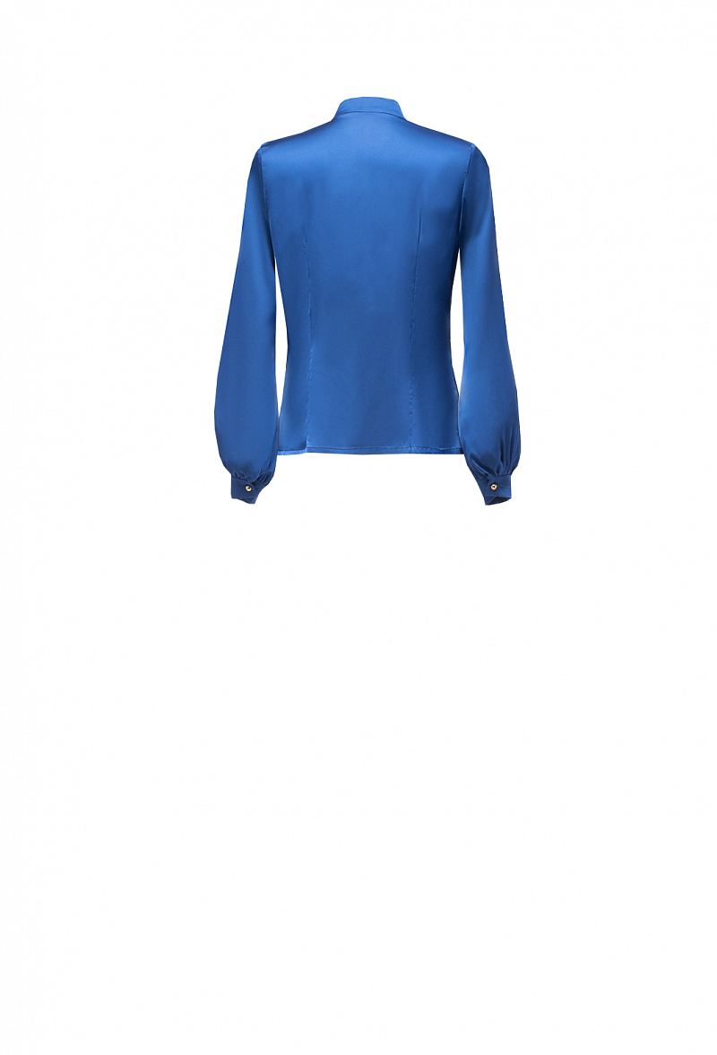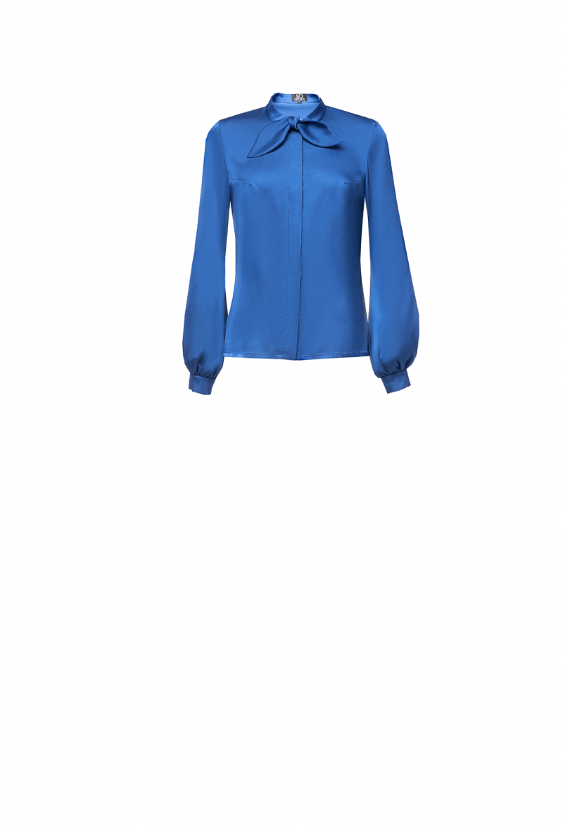 Блузка из Армани-шёлка, с воротником-стоечкой и завязками в виде лепестков. Планка на скрытых пуговицах.