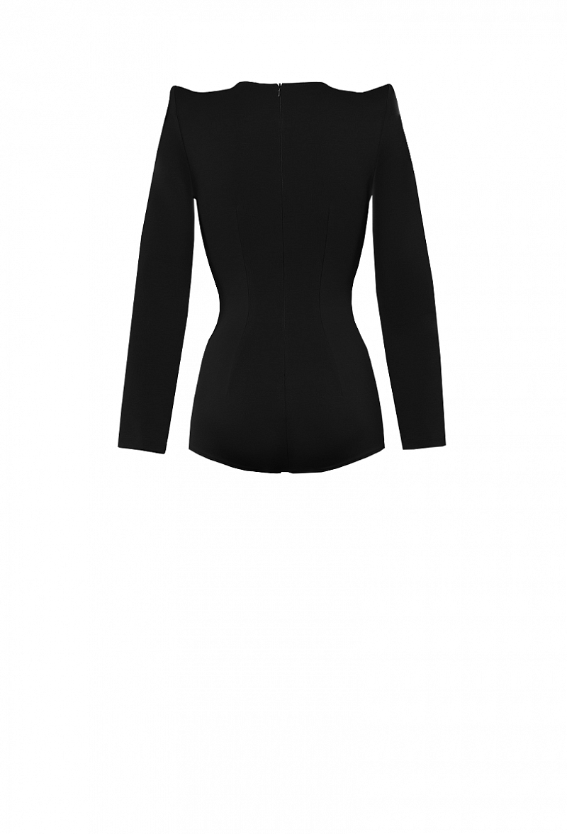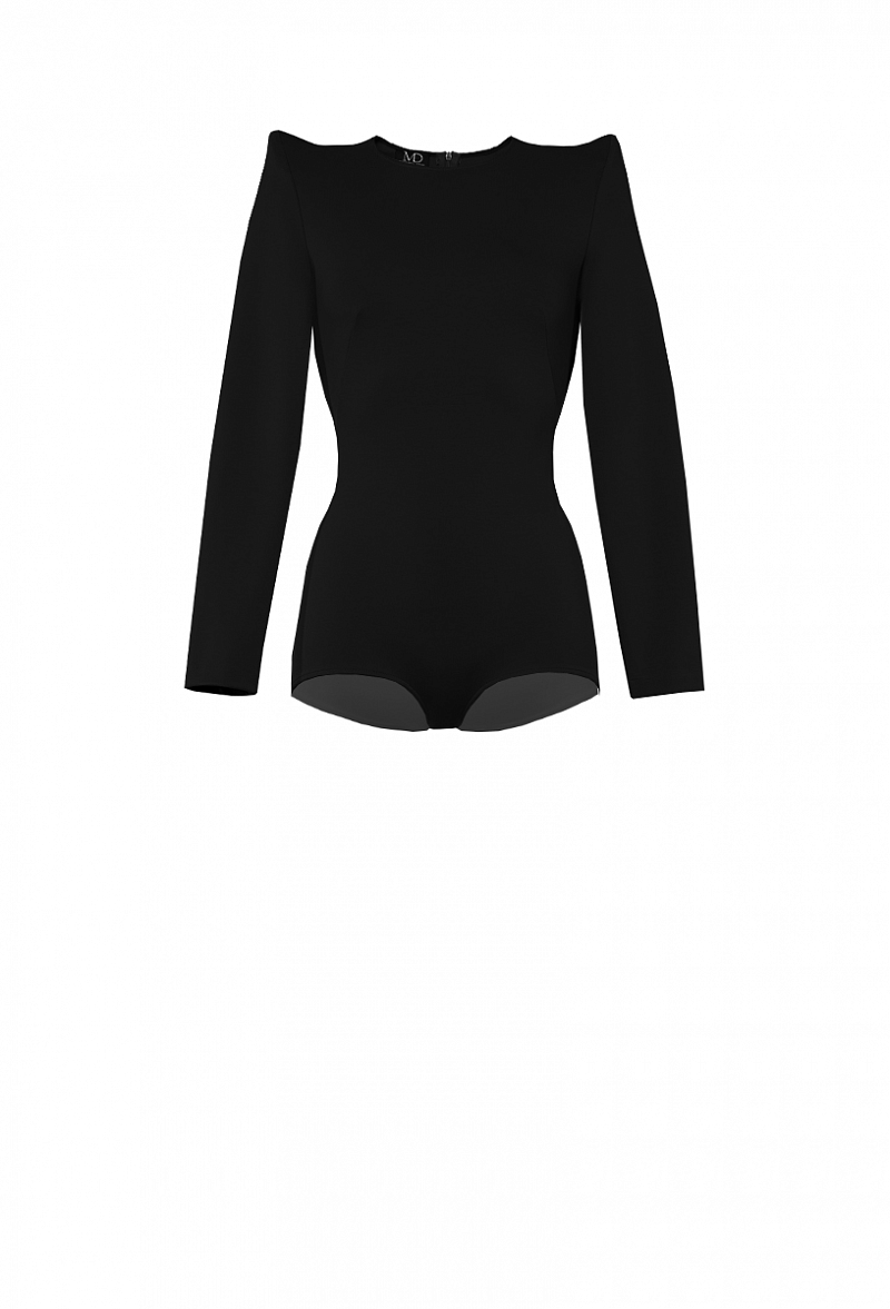Боди с шортиками, с длинными рукавами и с подплечниками.