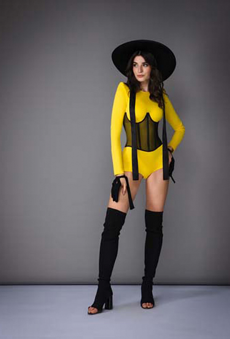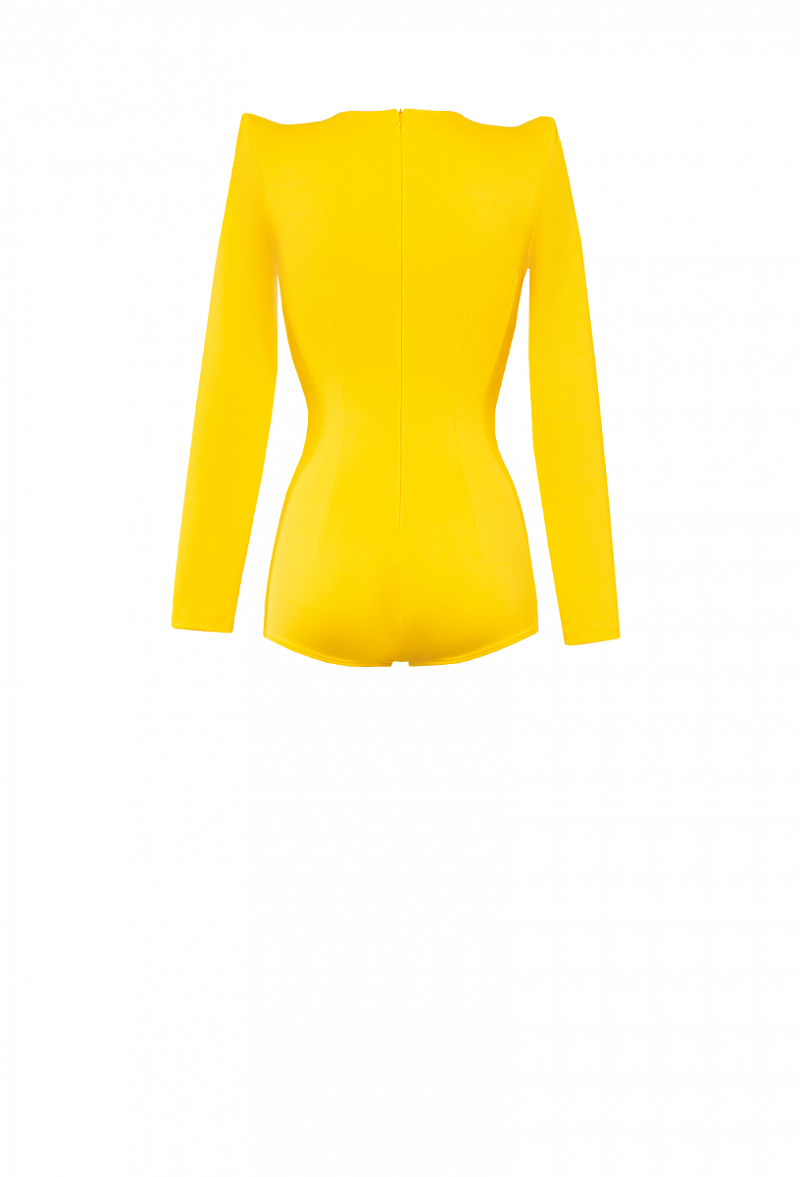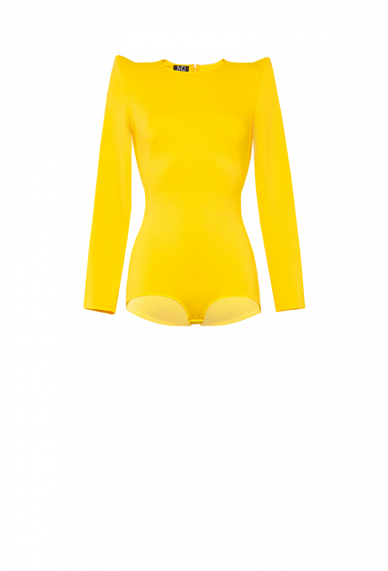 Боди с шортиками, с длинными рукавами и с подплечниками.