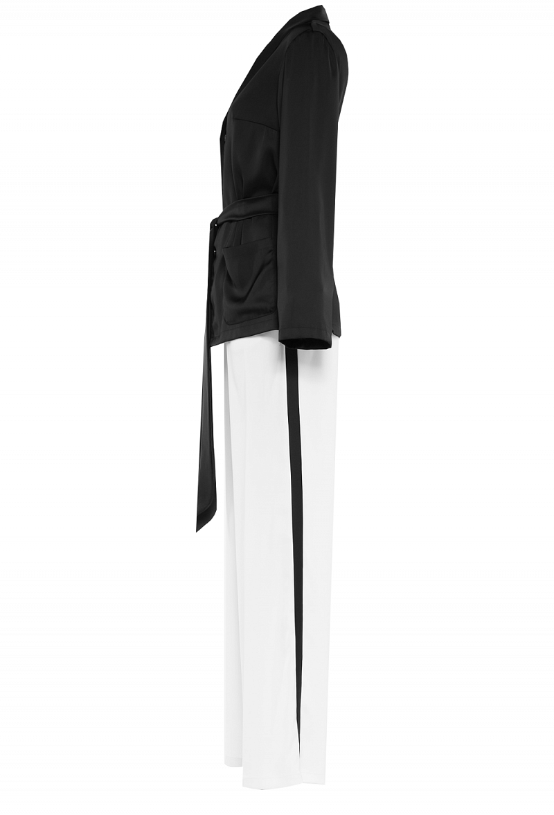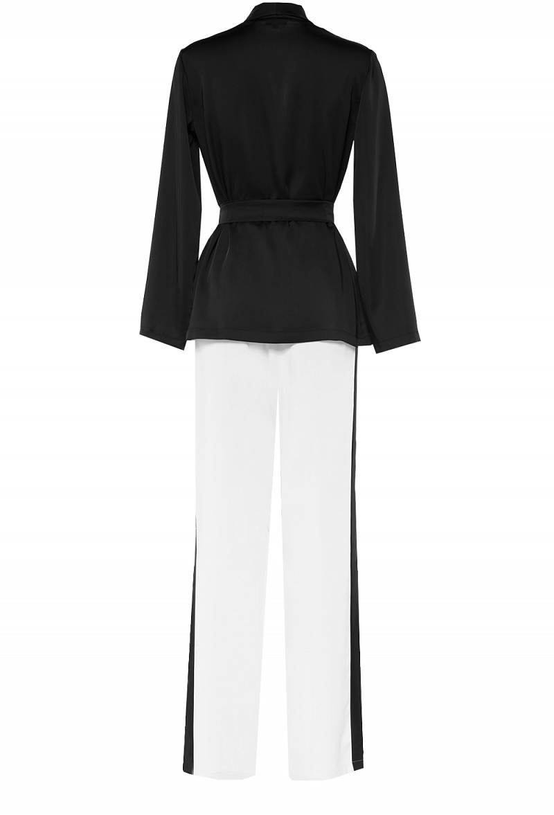 Брючный костюм из шелка чёрно-белый 06-19 SS