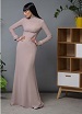Платье в пол, отрезное по талии, воротник-стойка и манжеты в складку оторочены стразами-Сваровски, бежевый