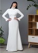 Платье в пол, отрезное по талии, воротник-стойка и манжеты в складку оторочены стразами-Сваровски, белый