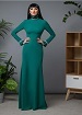 Платье в пол, отрезное по талии, воротник-стойка и манжеты в складку оторочены стразами-Сваровски, зелёный