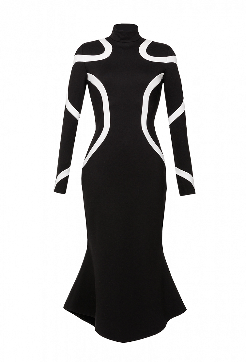 Fall/Winter 2021 Чёрное трикотажное платье с длинным рукавом силуэта годе