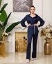 Шелковая блуза с глубоким декольте с воротником стойка, синий