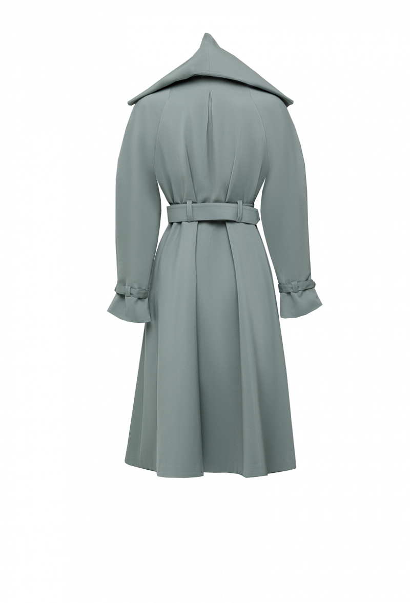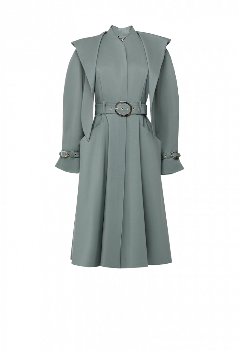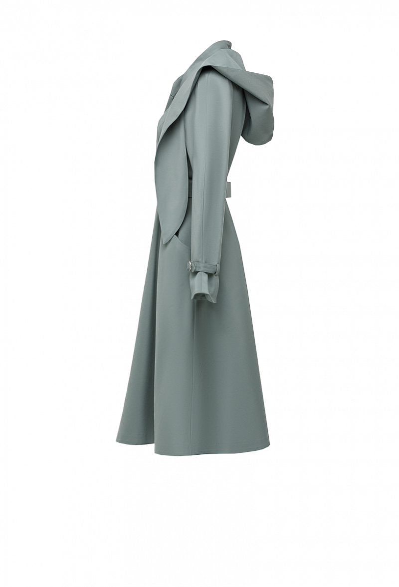 Плащ с отстегивающимся капюшоном, с А-образной юбкой, с карманами.