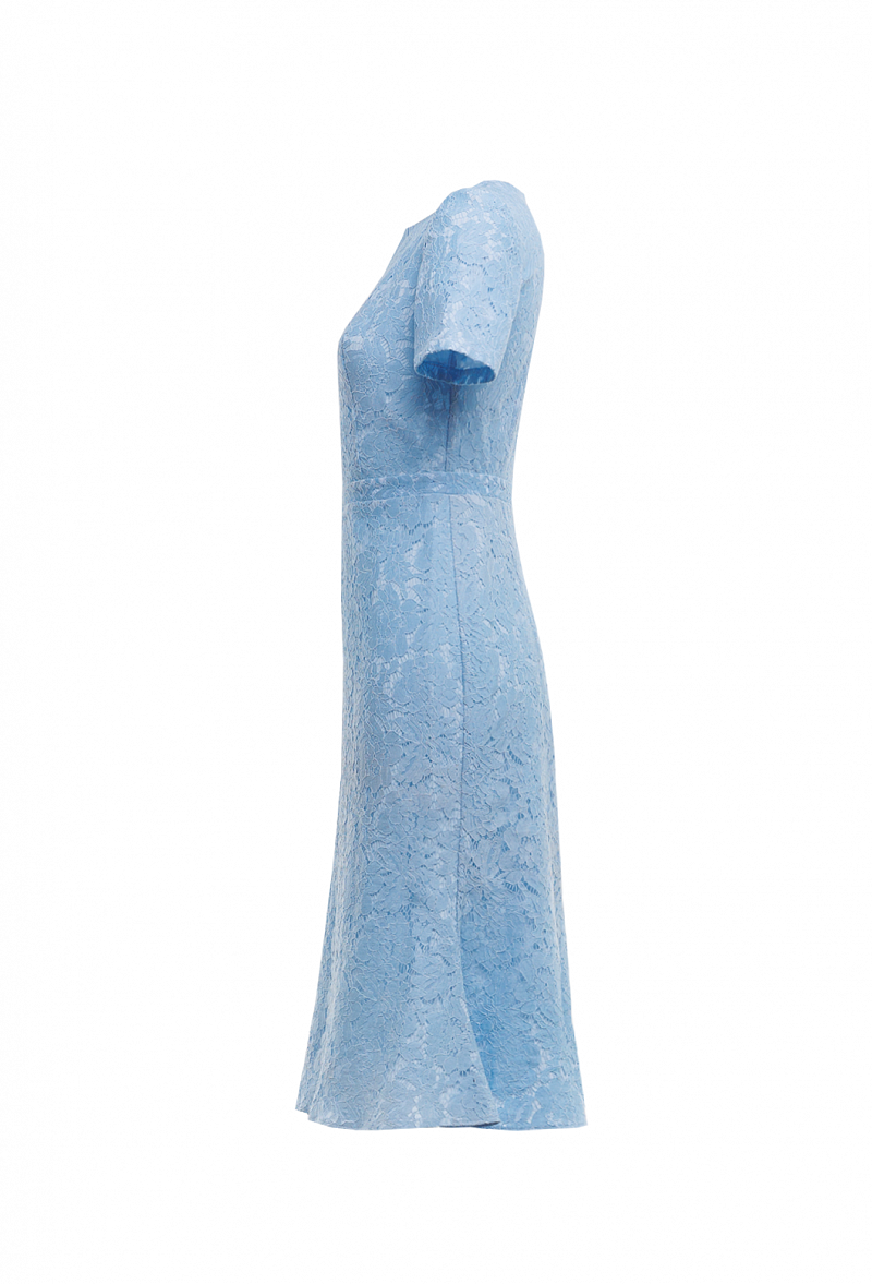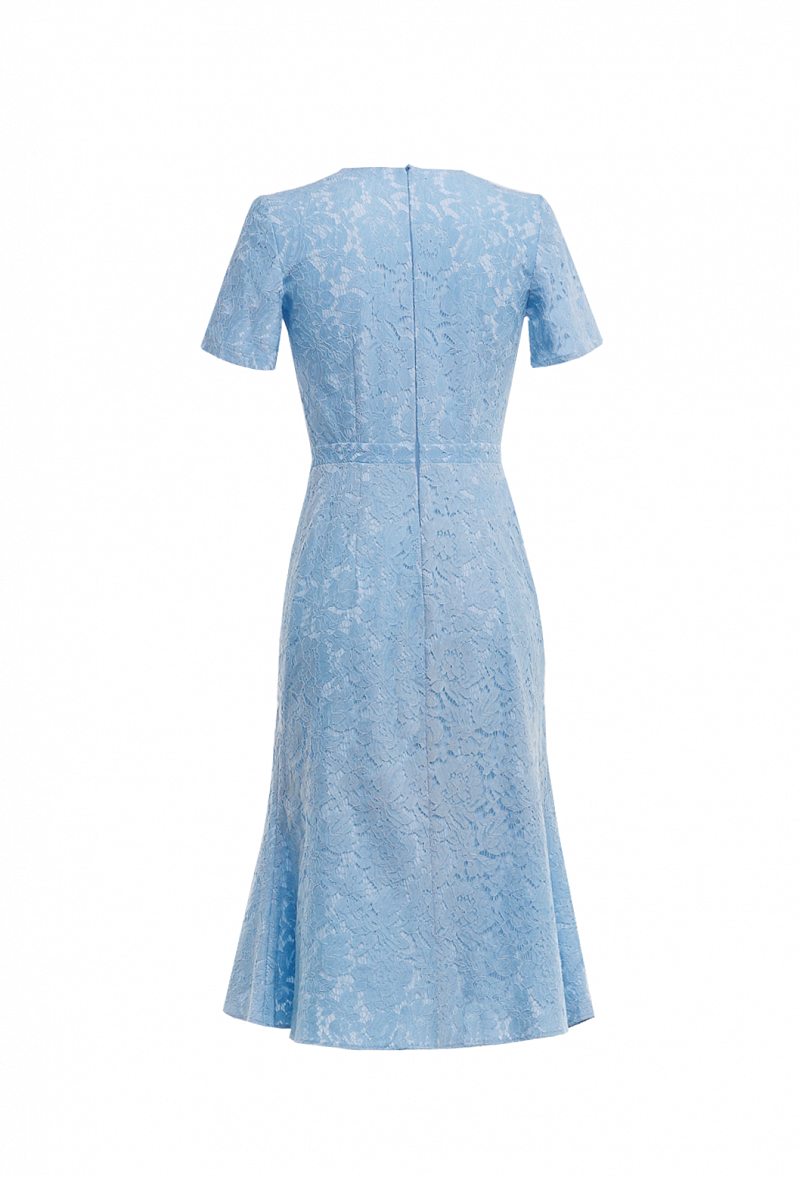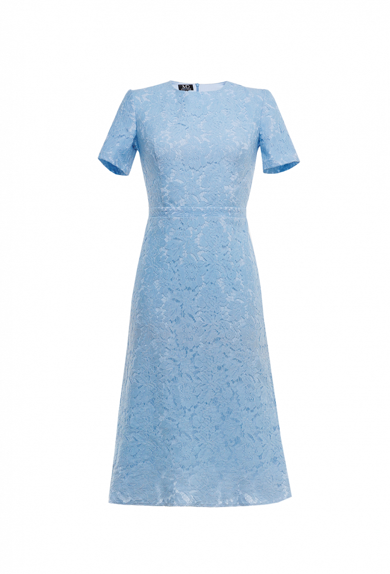 Гипюровое платье на подкладке с коротким рукавом, отрезное по талии голубое