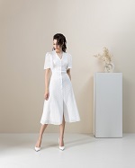 Хлопковое платье из "шитья" на пуговицах. V-образный вырез, приталенное, с трапецевидной юбкой