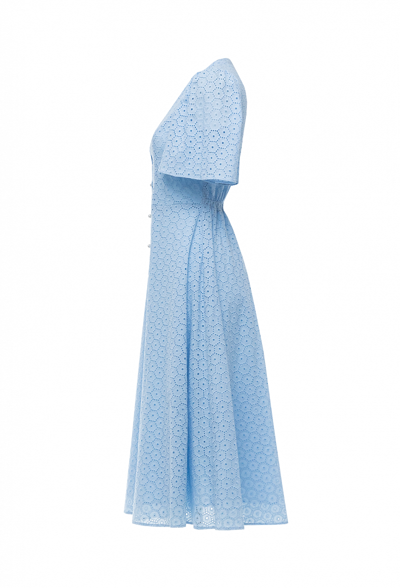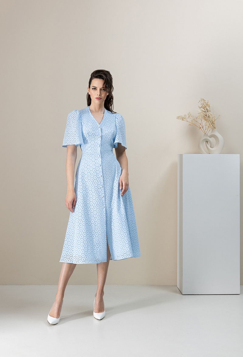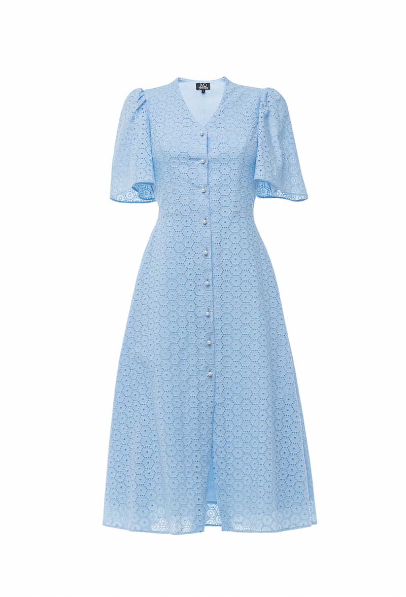 Хлопковое платье из "шитья" на пуговицах. V-образный вырез, приталенное, с трапециевидной юбкой