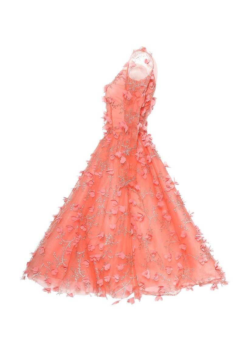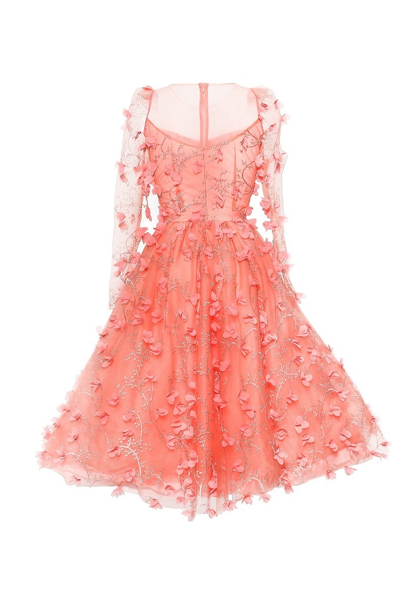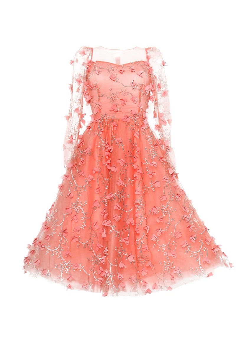 Коктейльное платье из сетки с вышивкой и аппликацией. Многослойная юбка "солнце".