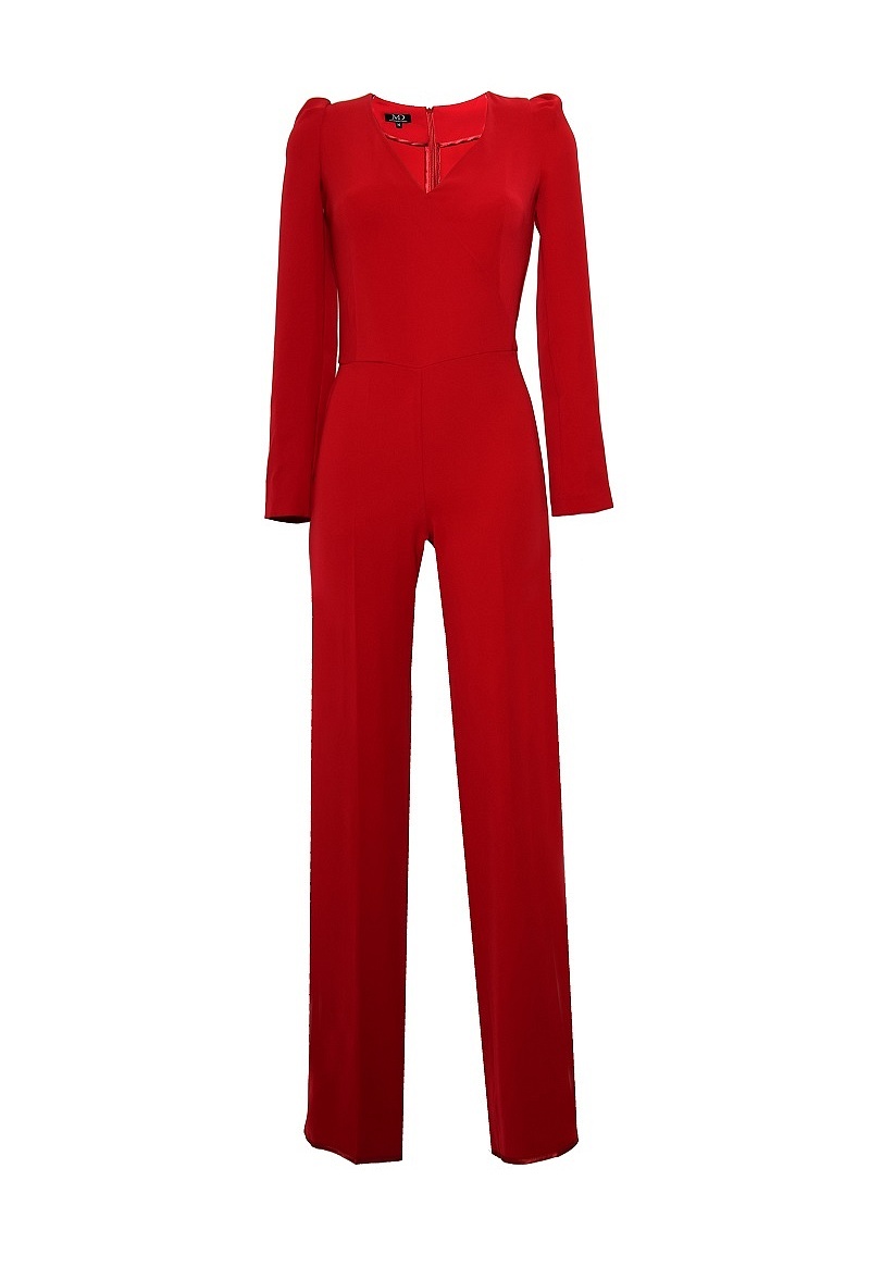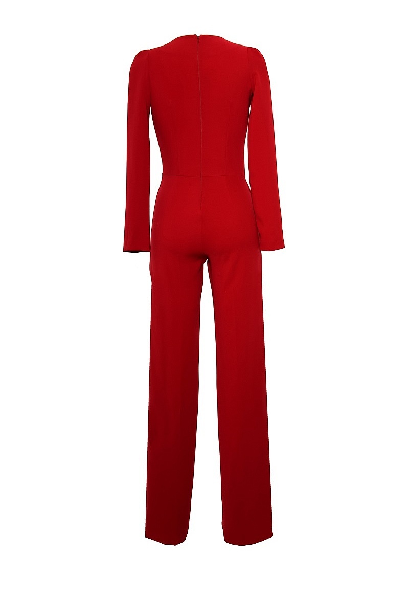 Креповый комбинезон с длинными рукавами, выполненный в классическом стиле.