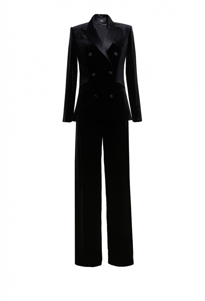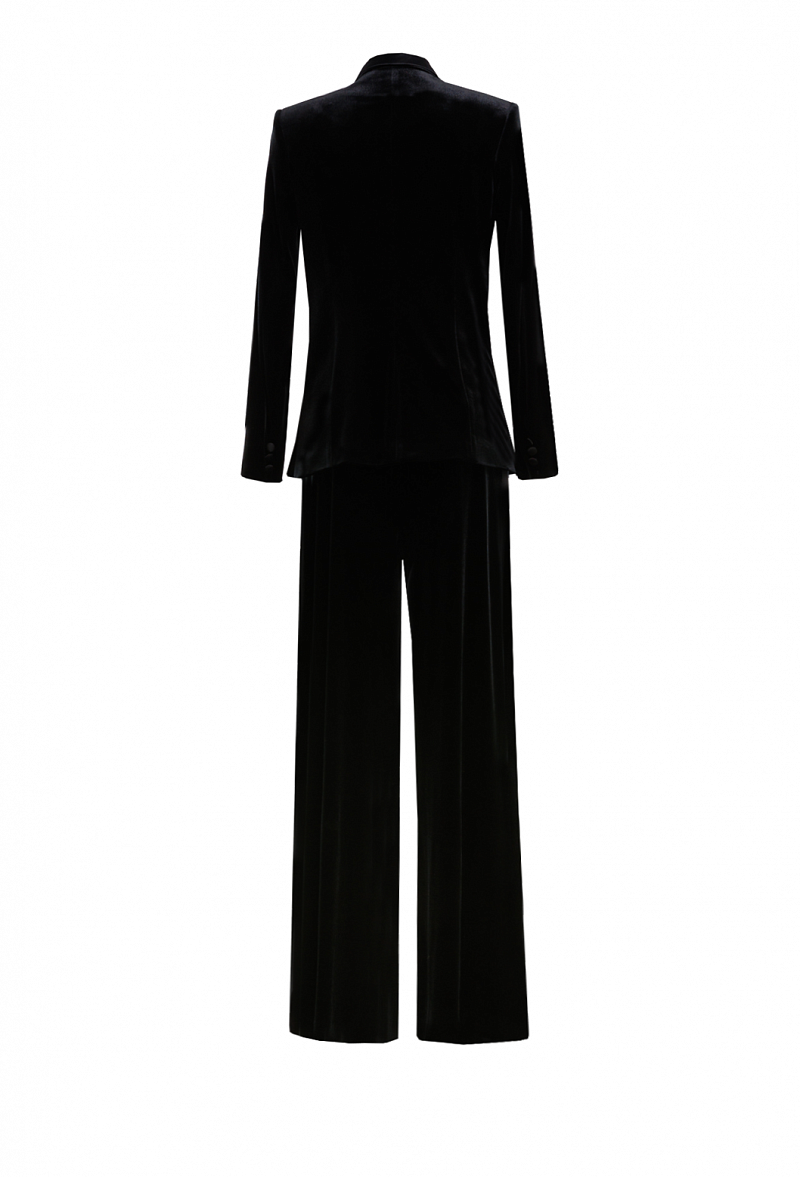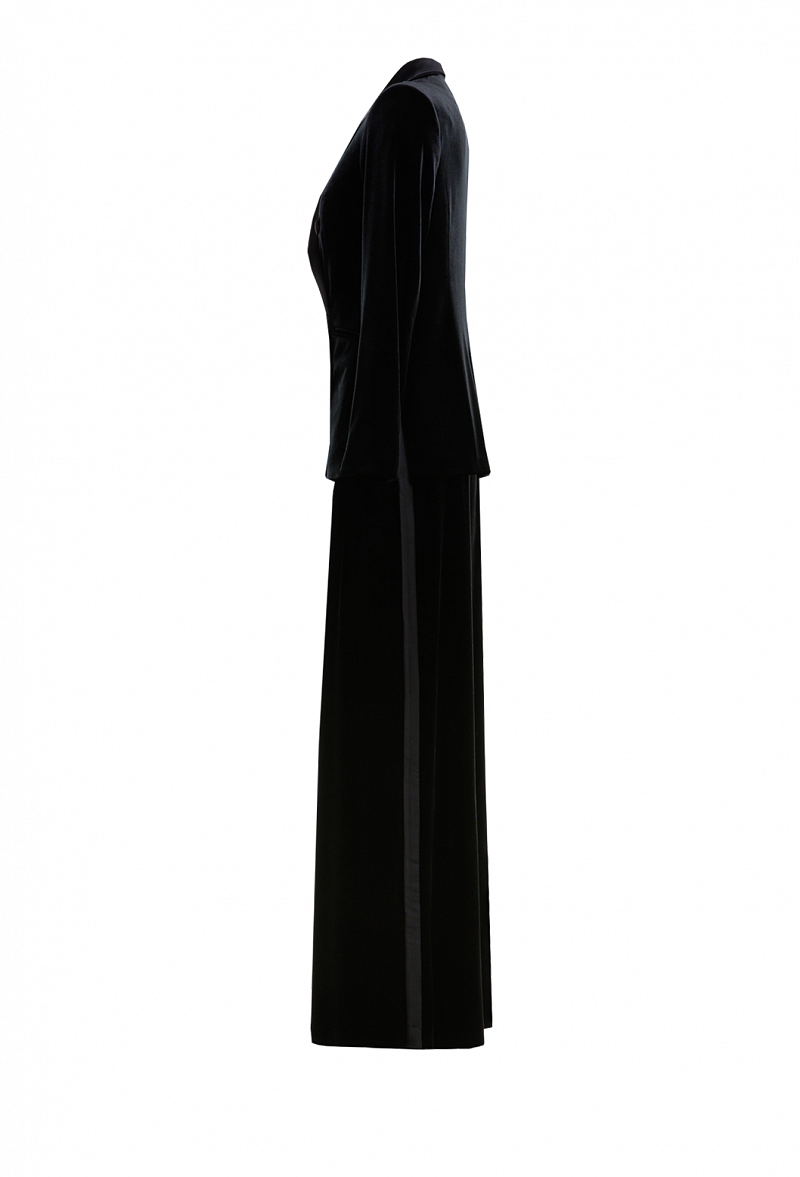 Брючный костюм: пиджак приталенный двубортный, брюки-палаццо.