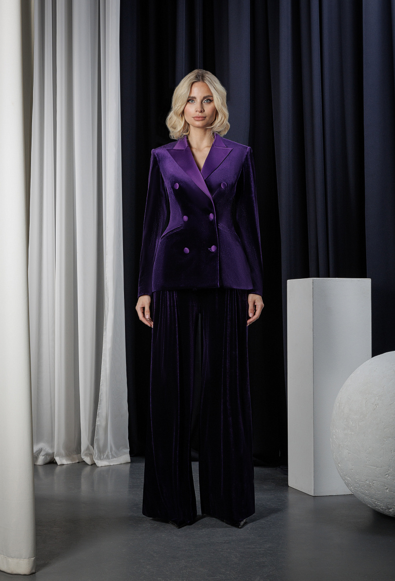 Костюм брючный бархатный фиолетовый 18-02-24 SS