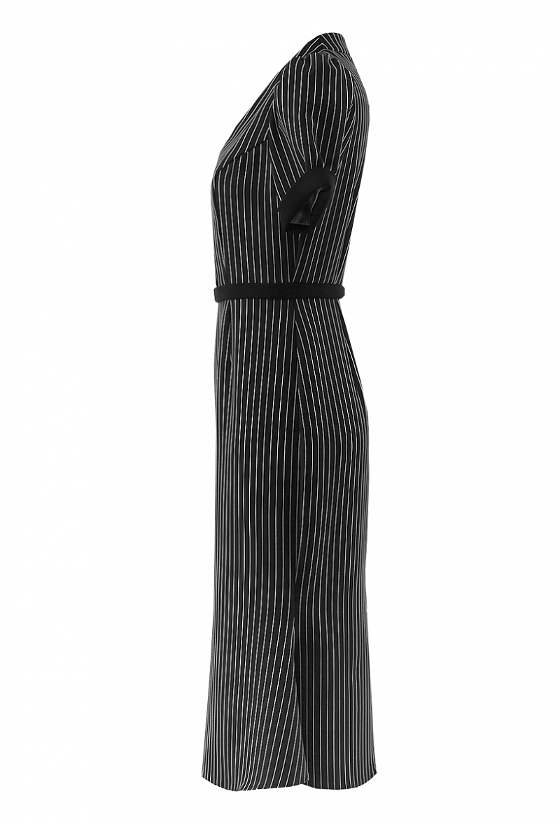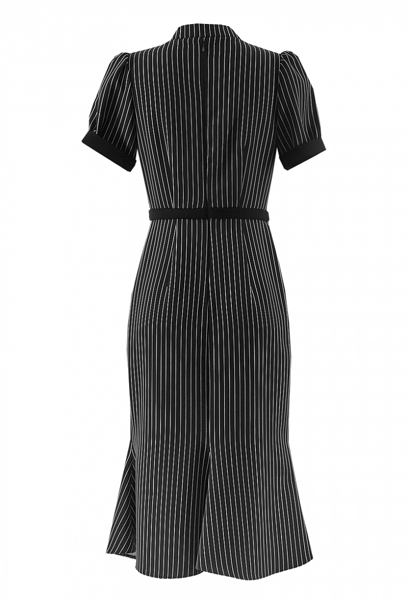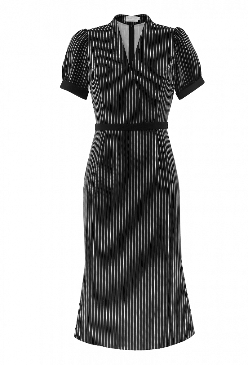 Креповое платье с коротким рукавом, с V-образным вырезом. Юбка - годе. Принт - полоска.