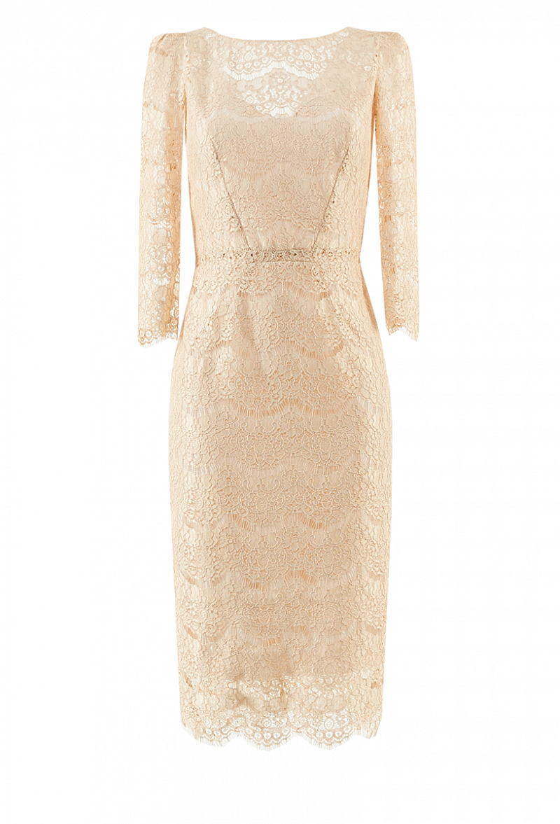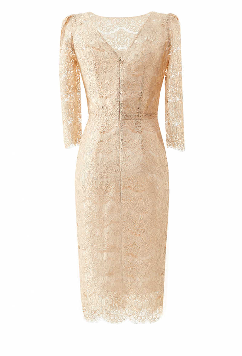 Кружевное платье-футляр с рукавом 3/4 бежевое 12-03-20 SS