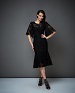 Кружевное платье - футляр с подкладом, с широким рукавом. С отрезной юбкой - волан. С V-образным вырезом по спинке,
