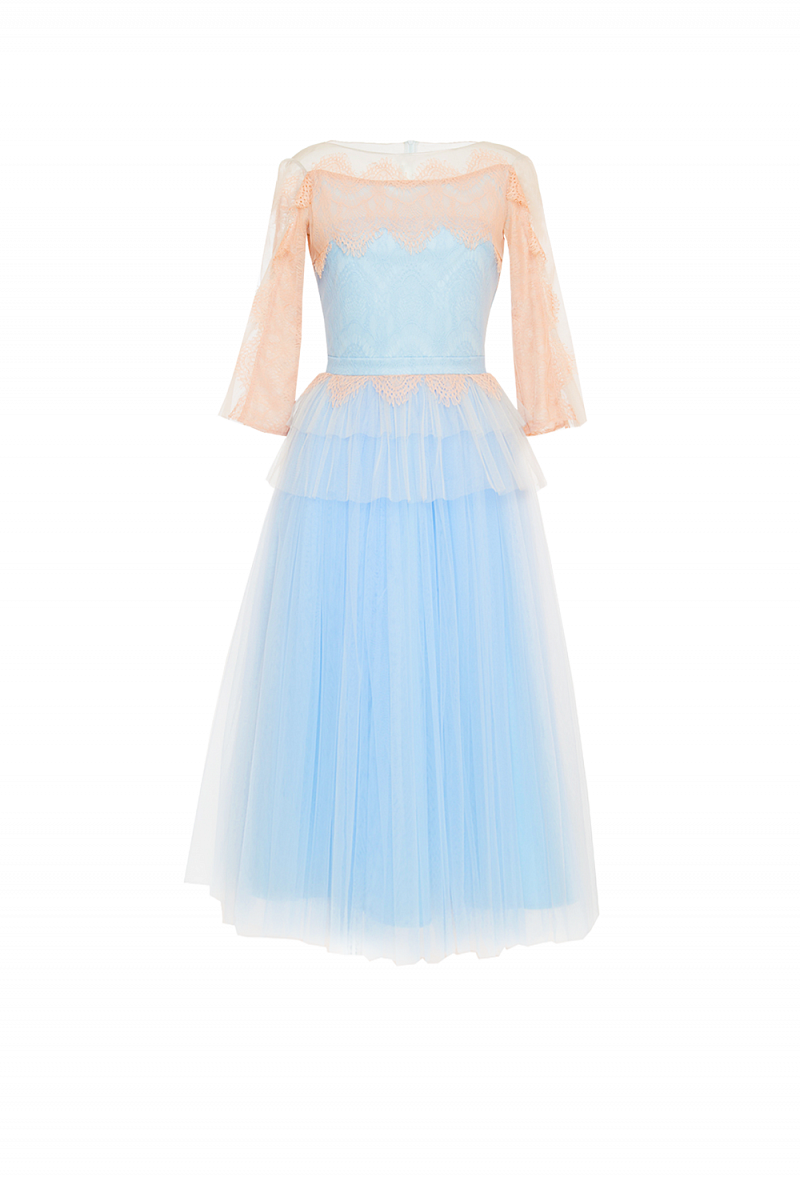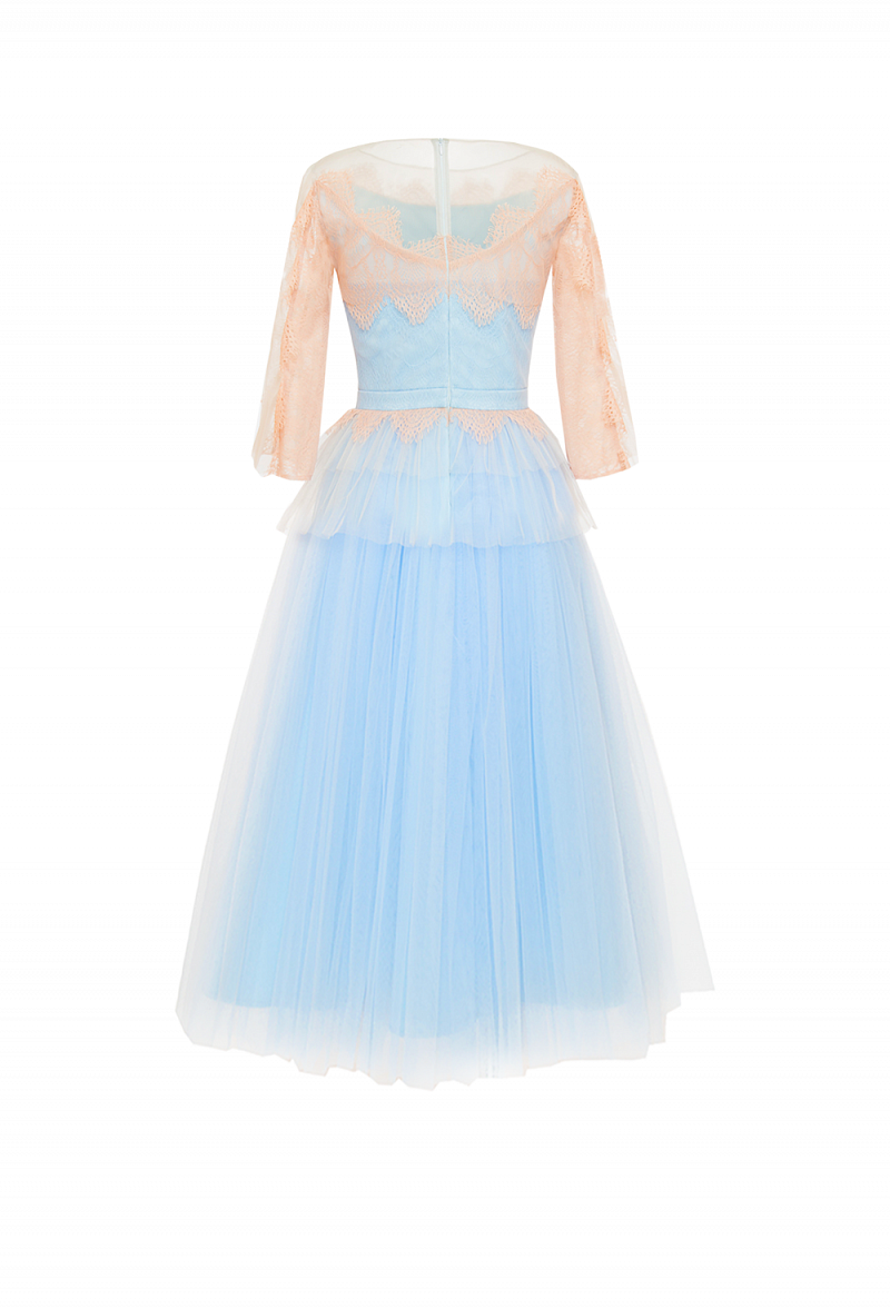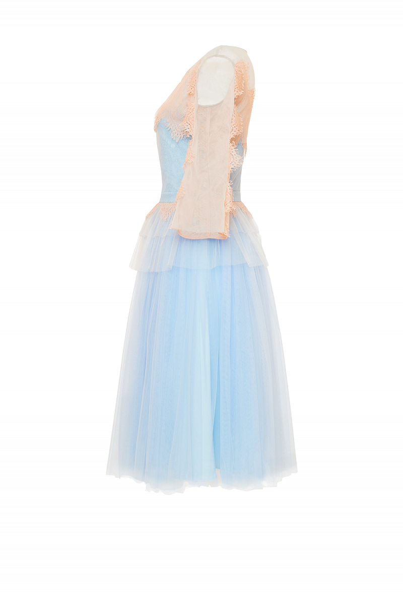 - кокетка полочки, спинки полупрозрачная из фатина - рукав колол комбинация кружева и фатина