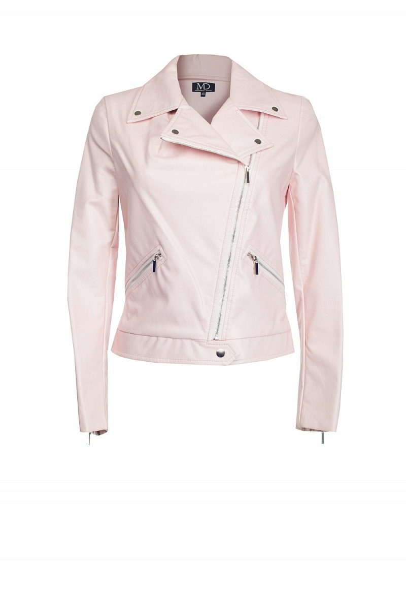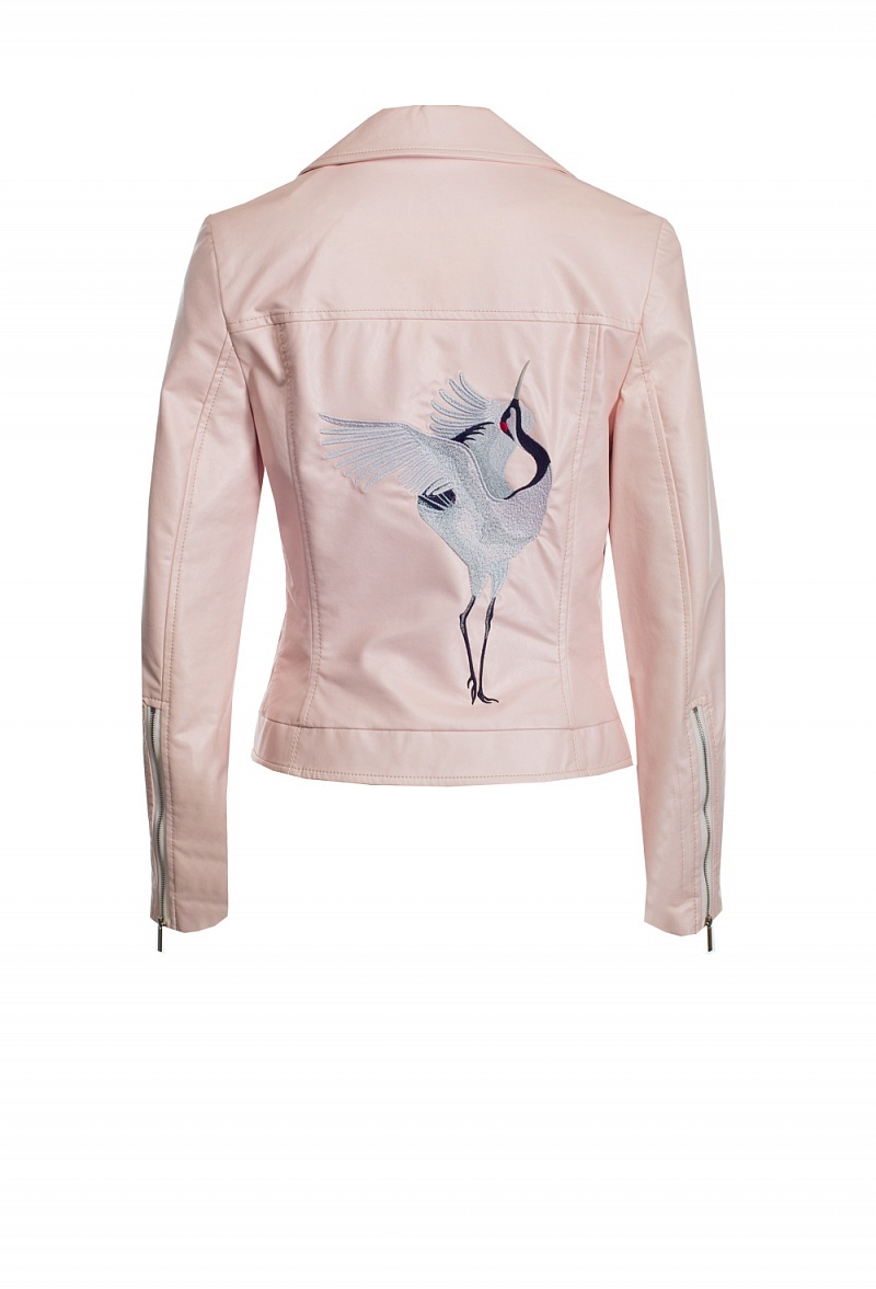 Приталенная куртка-косуха из экокожи, закрывающаяся на молнию. На спинке- авторская вышивка. На плечах-погоны.Куртка декорирована кнопками, на рукавах молнии.