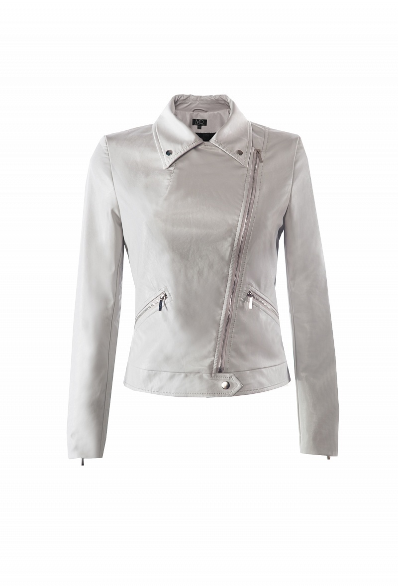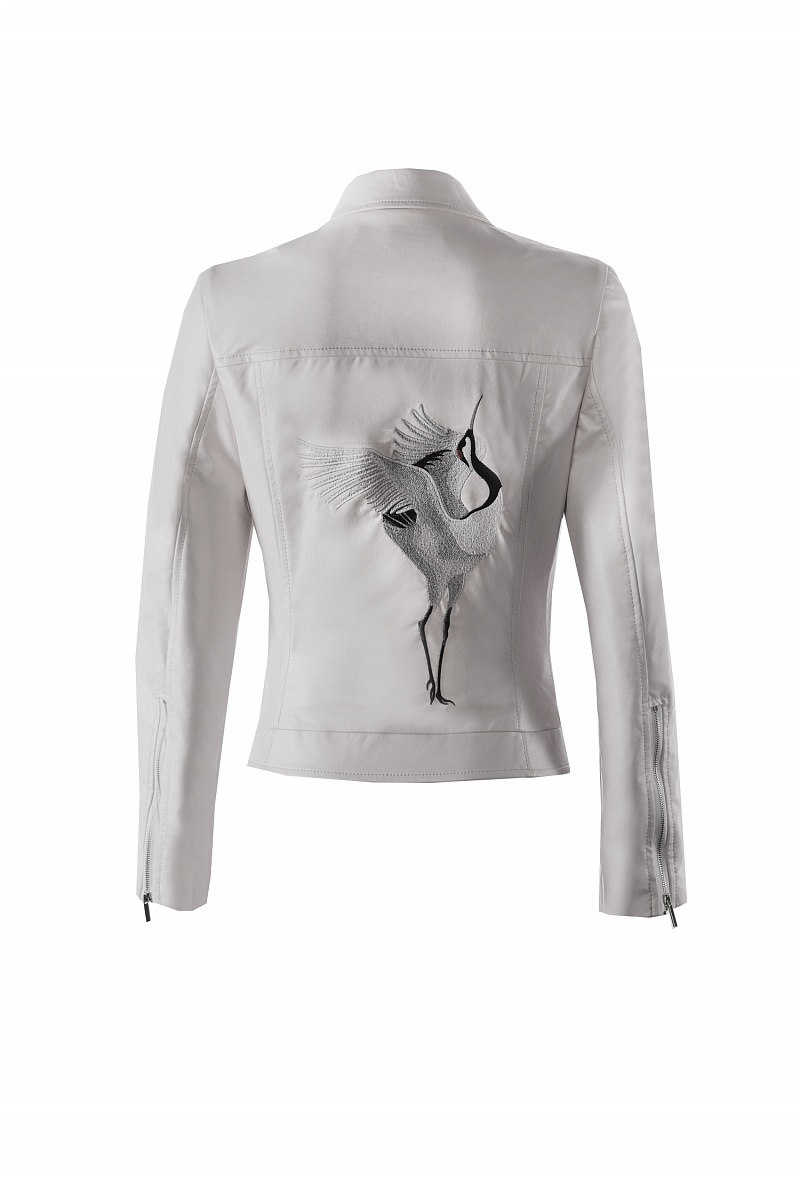 Приталенная куртка-косуха из экокожи, закрывающаяся на молнию. На спинке- авторская вышивка. На плечах-погоны.Куртка декорирована кнопками, на рукавах молнии.