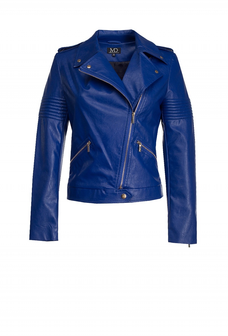 Приталенная куртка-косуха из экокожи, закрывающаяся на молнию. На спинке- авторская вышивка. На плечах-погоны.Куртка декорирована кнопками, на рукавах молнии.