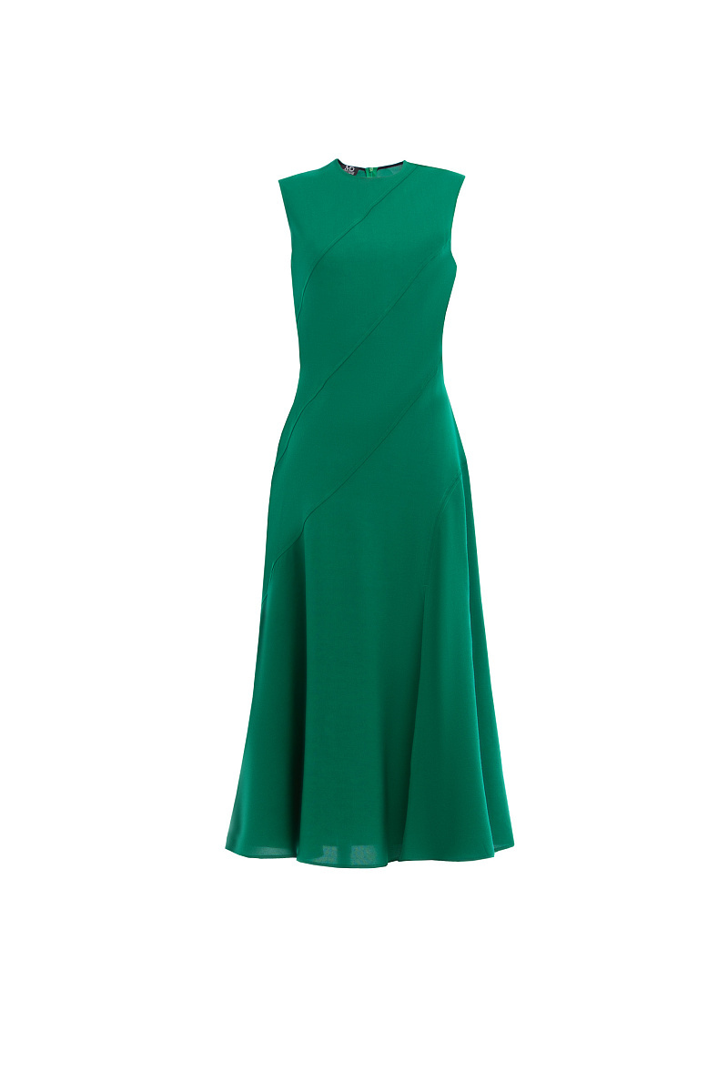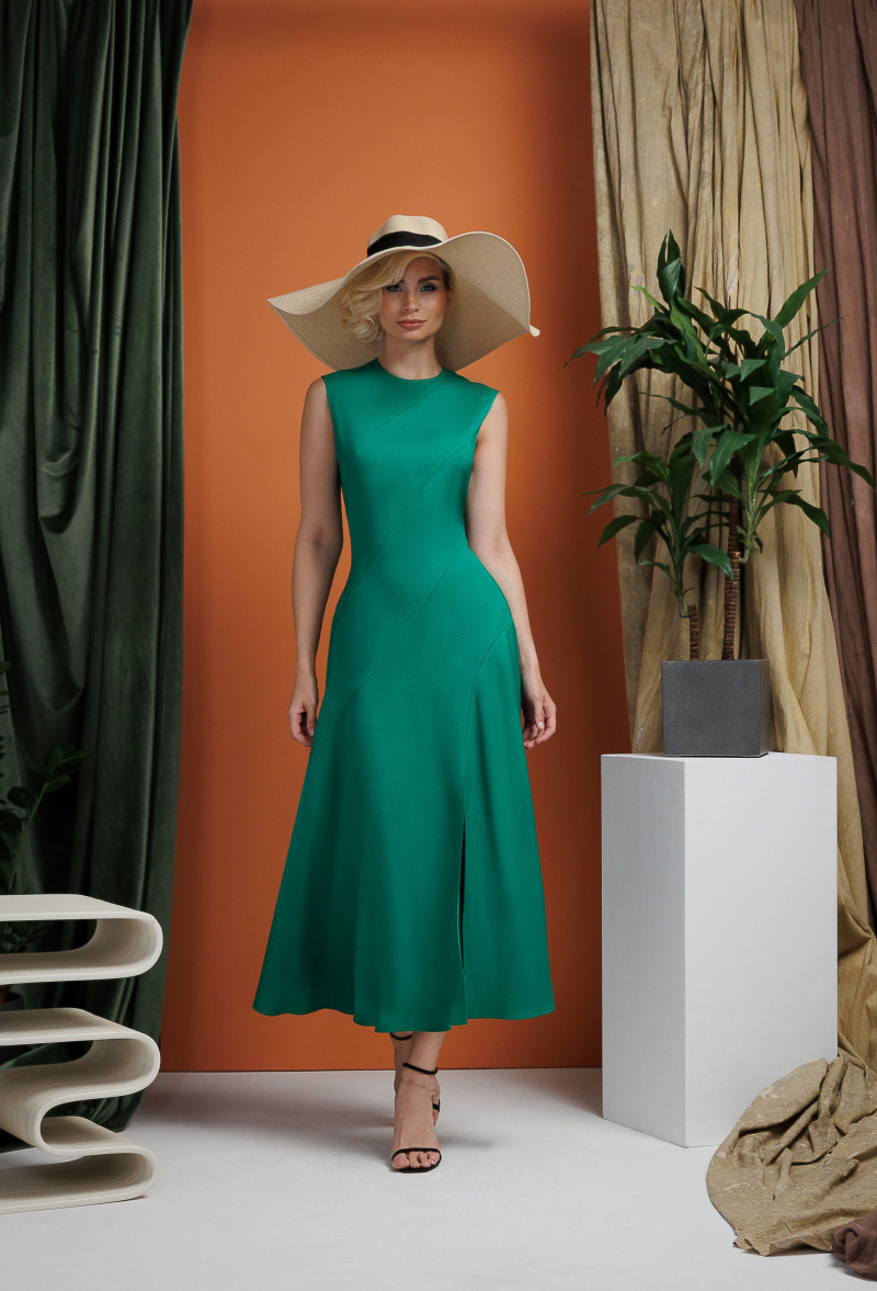 Льняное платье без рукавов зеленое 05-02-25 SS