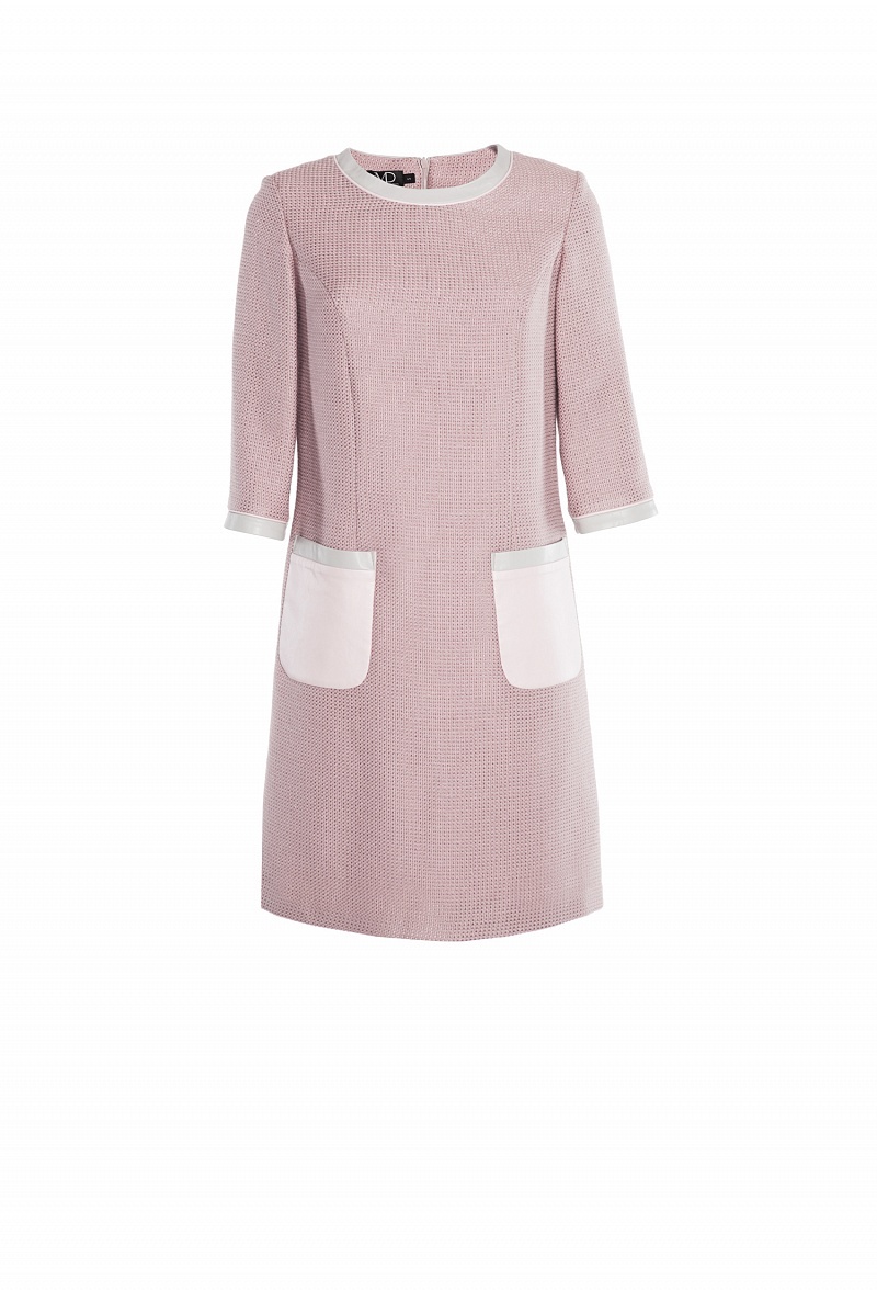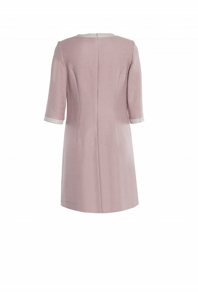 Мини-платье прямого силуэта из японской шерсти. Накладные карманы, горловина, манжеты- выполнены из экокожи.