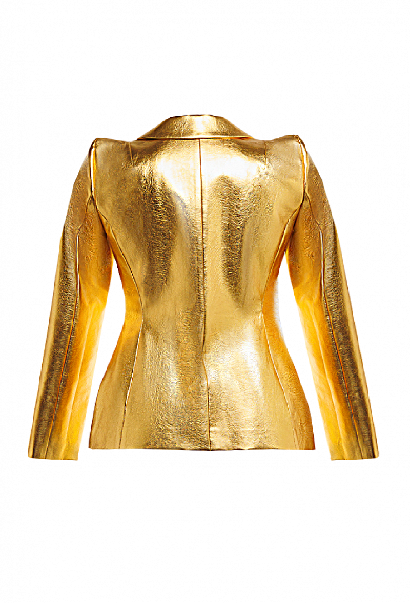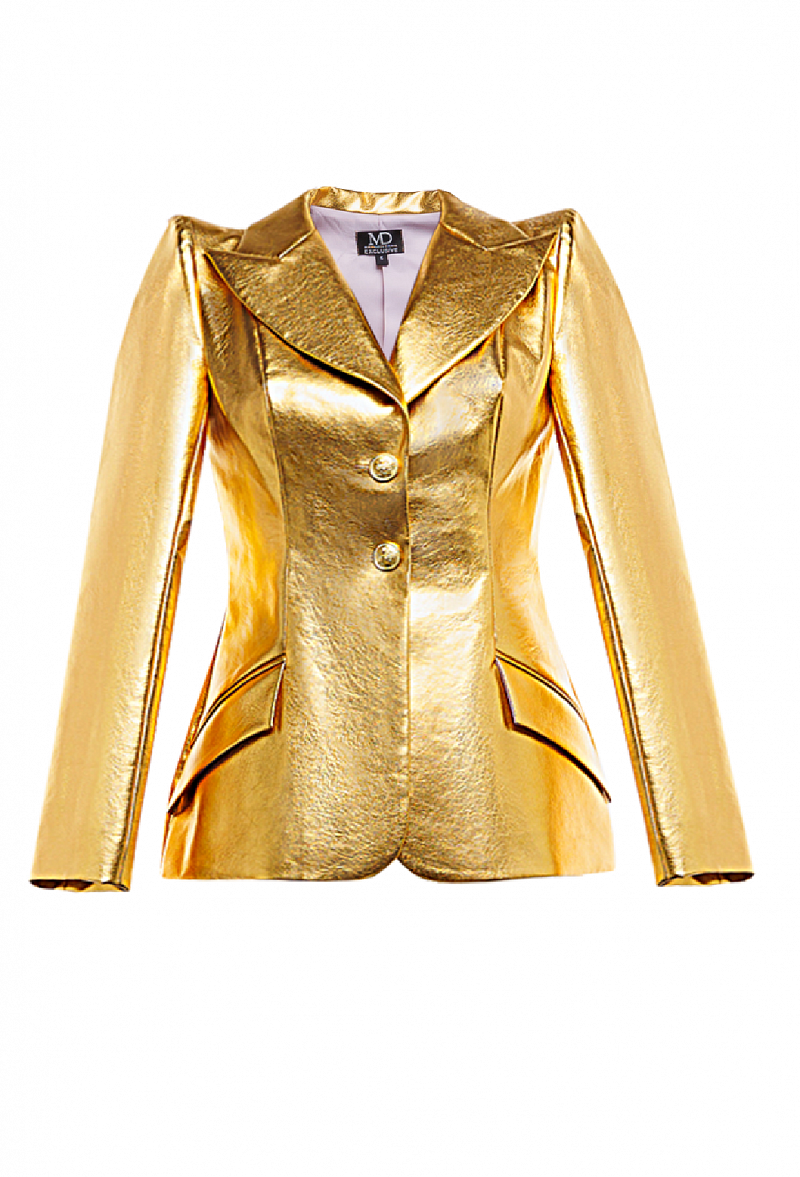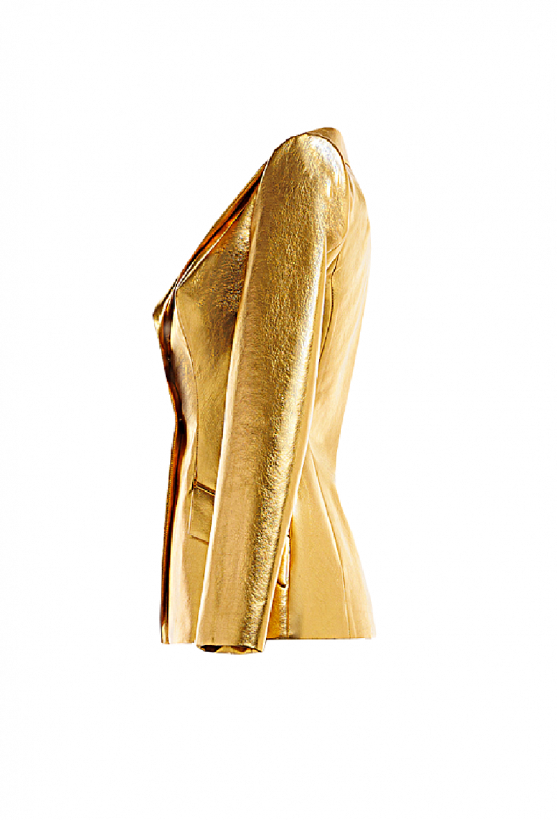 Пиджак однобортный, приталенный с английским воротником. Обтяжные пуговицы и прорезные карманы с клапаном.