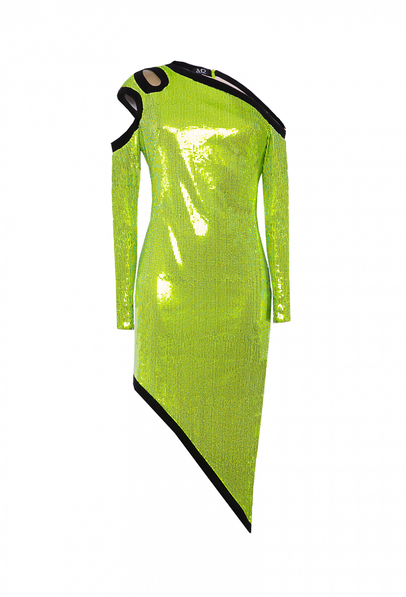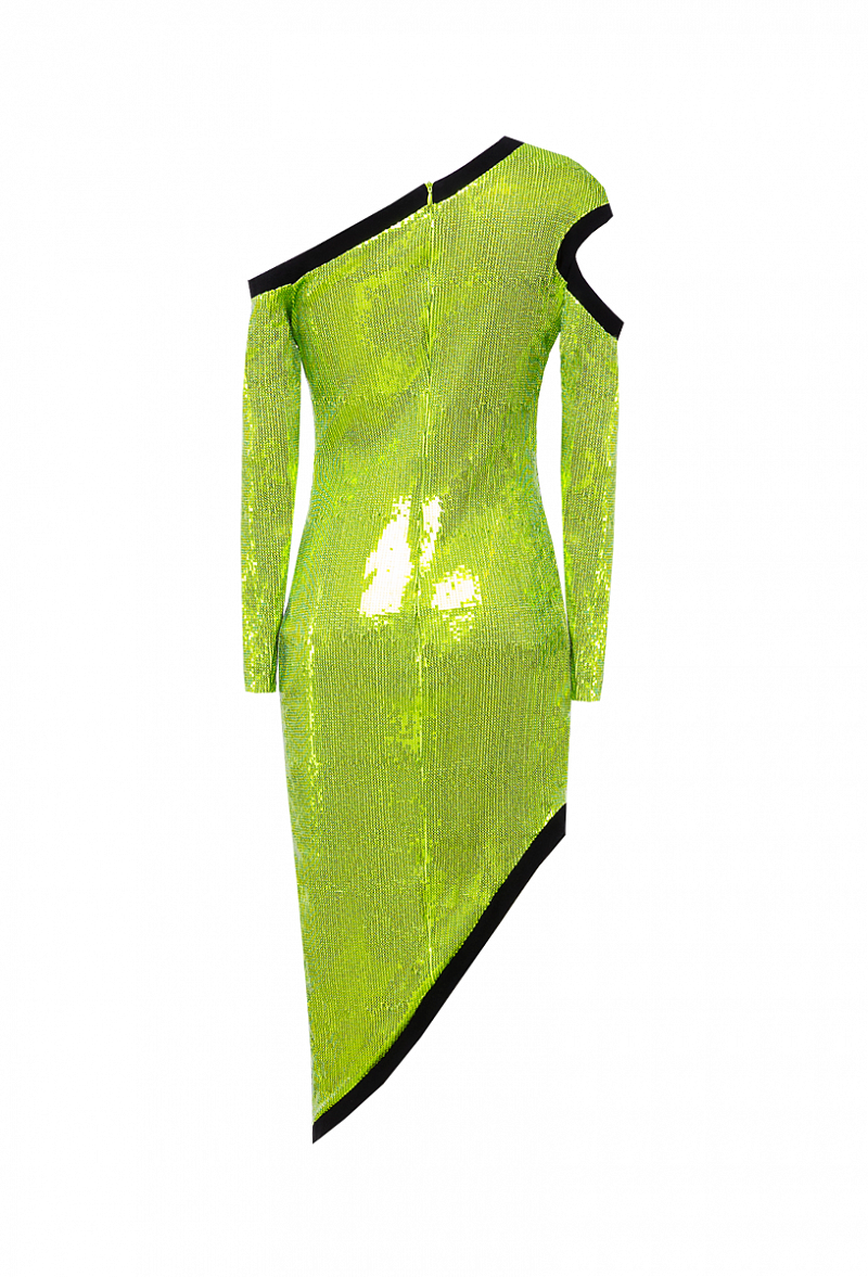 Платье ассиметричное в пайетках салатовое 17-01-22 SS