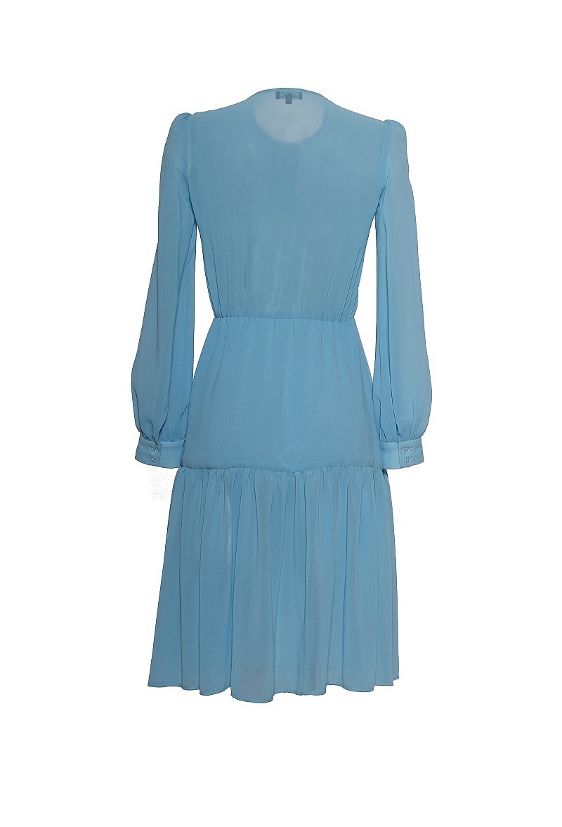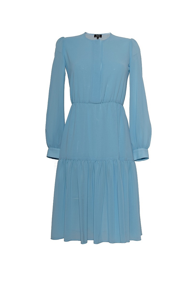 Платье c длинными рукавами на манжетах и юбкой ярусы.