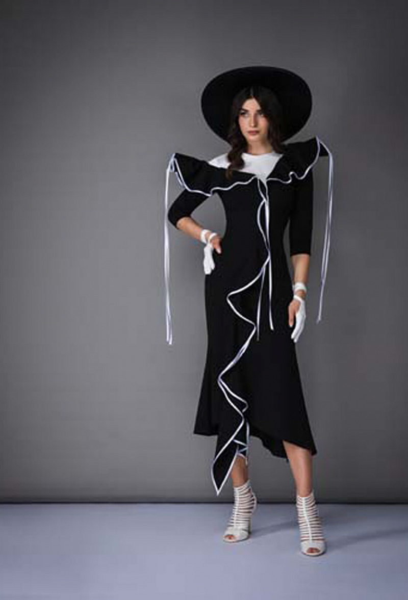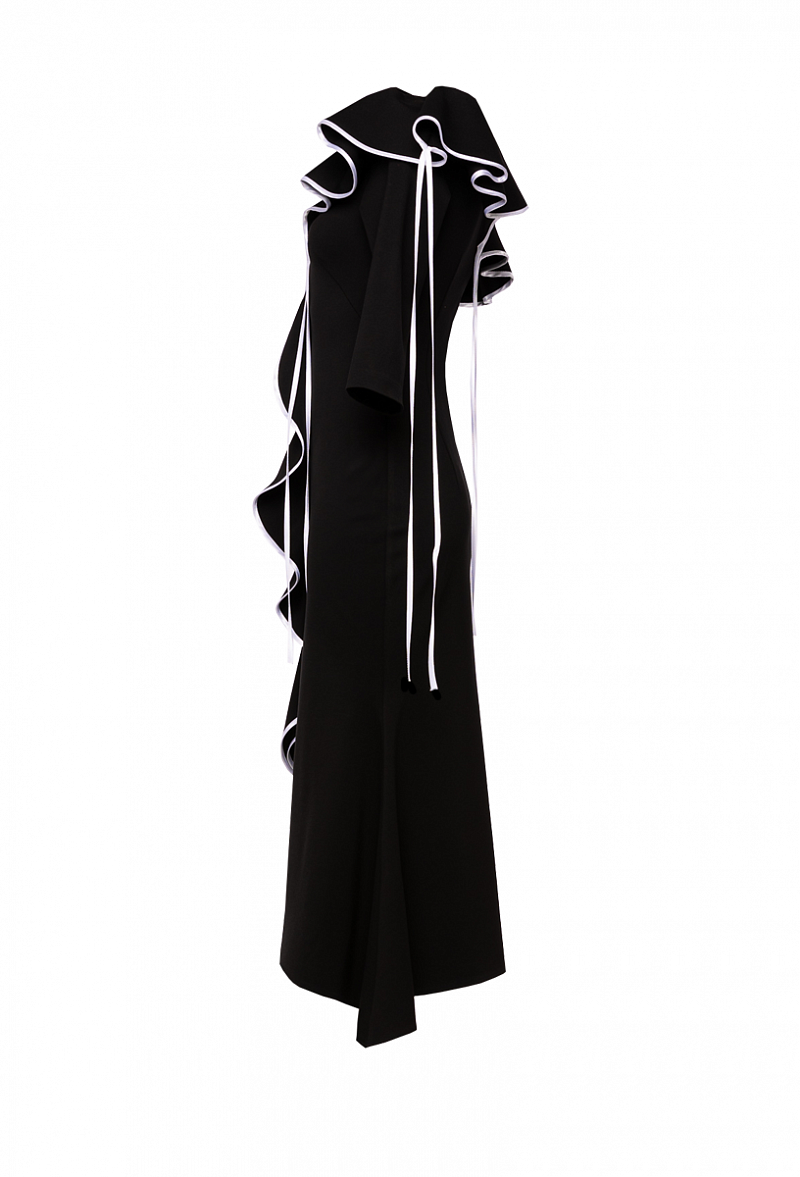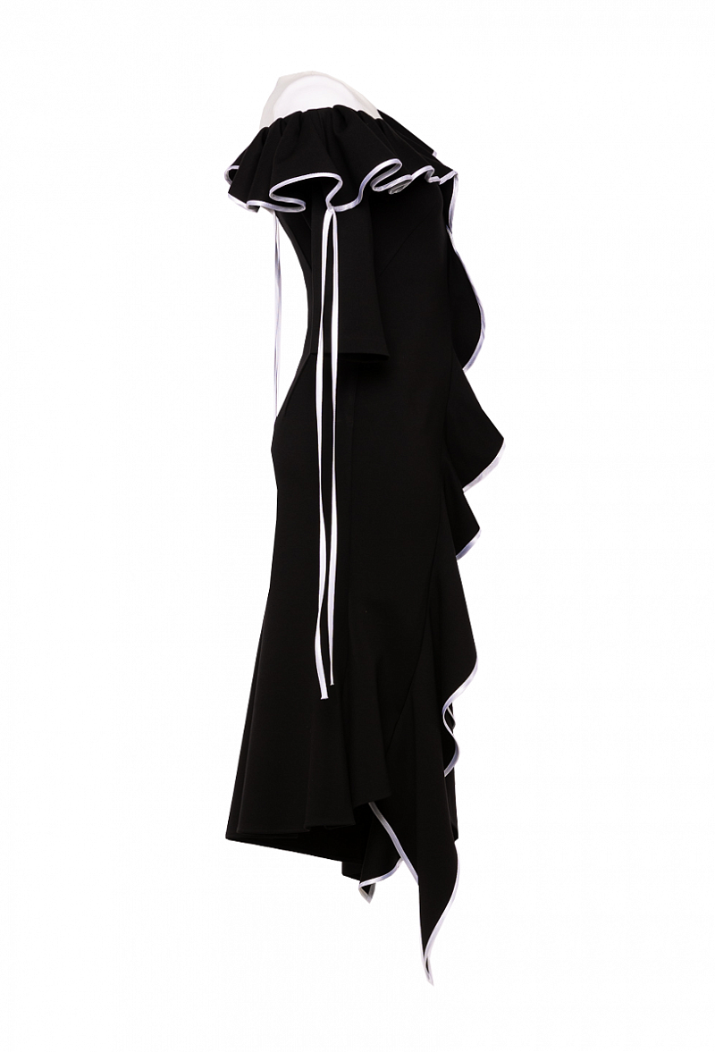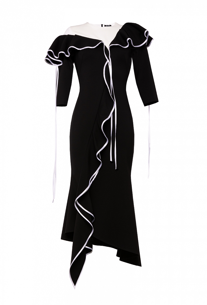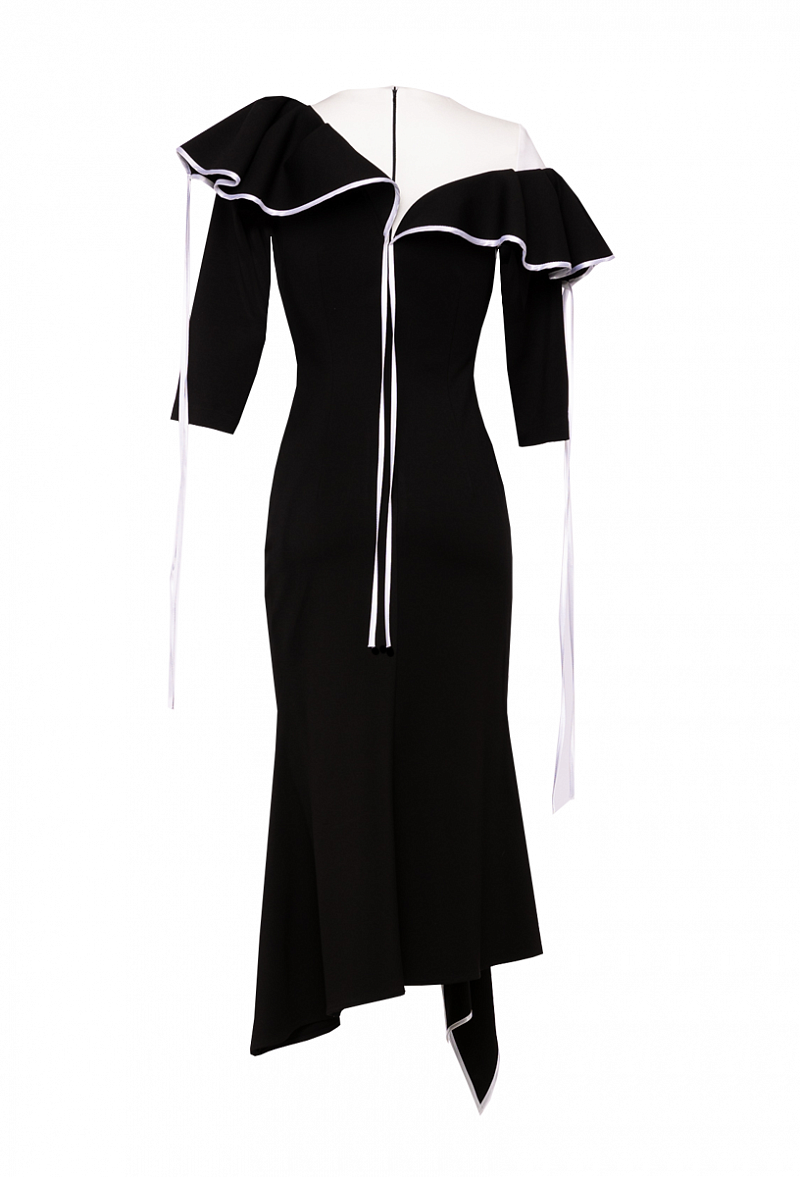 Платье чёрное с воланами и ассиметричной кокеткой 01-01-21SS
