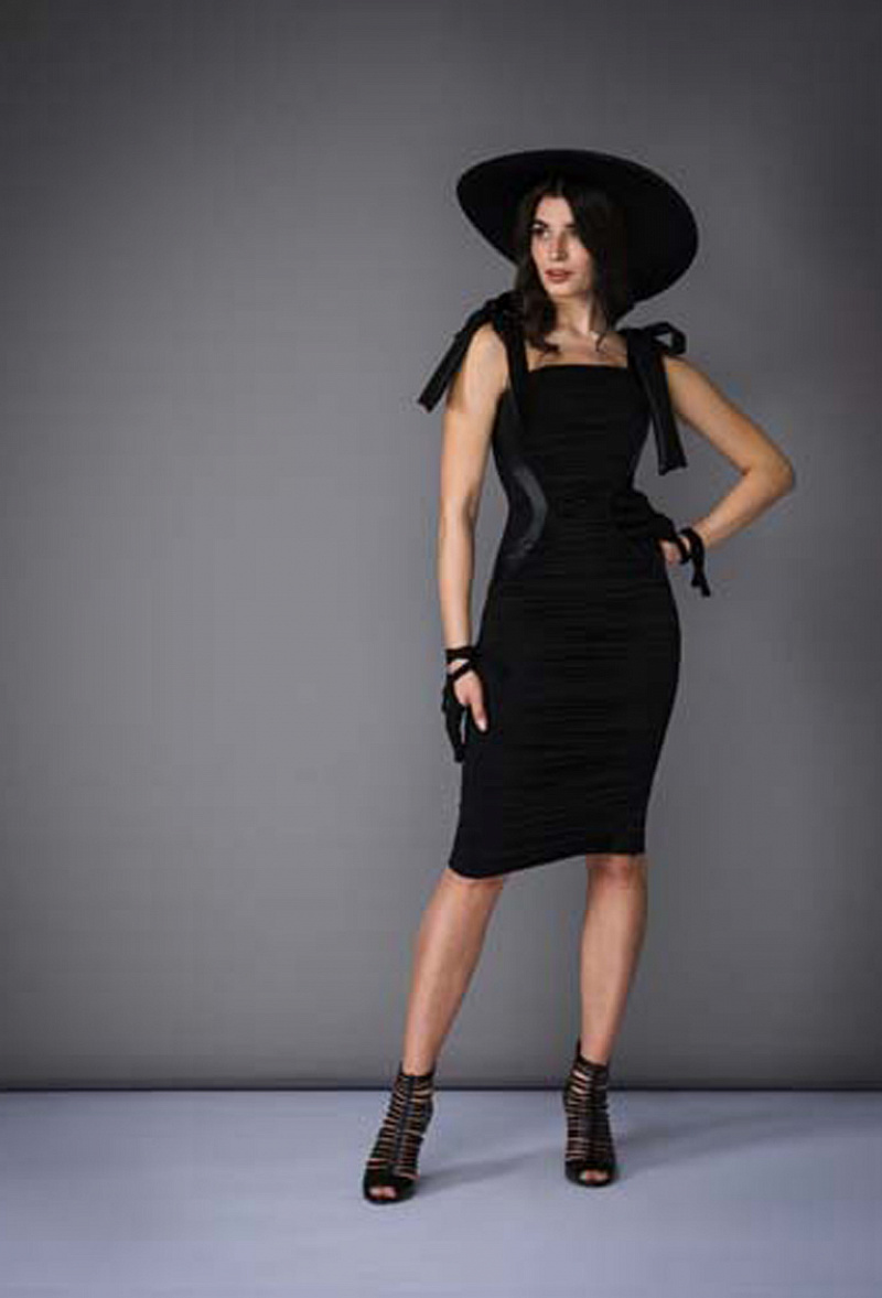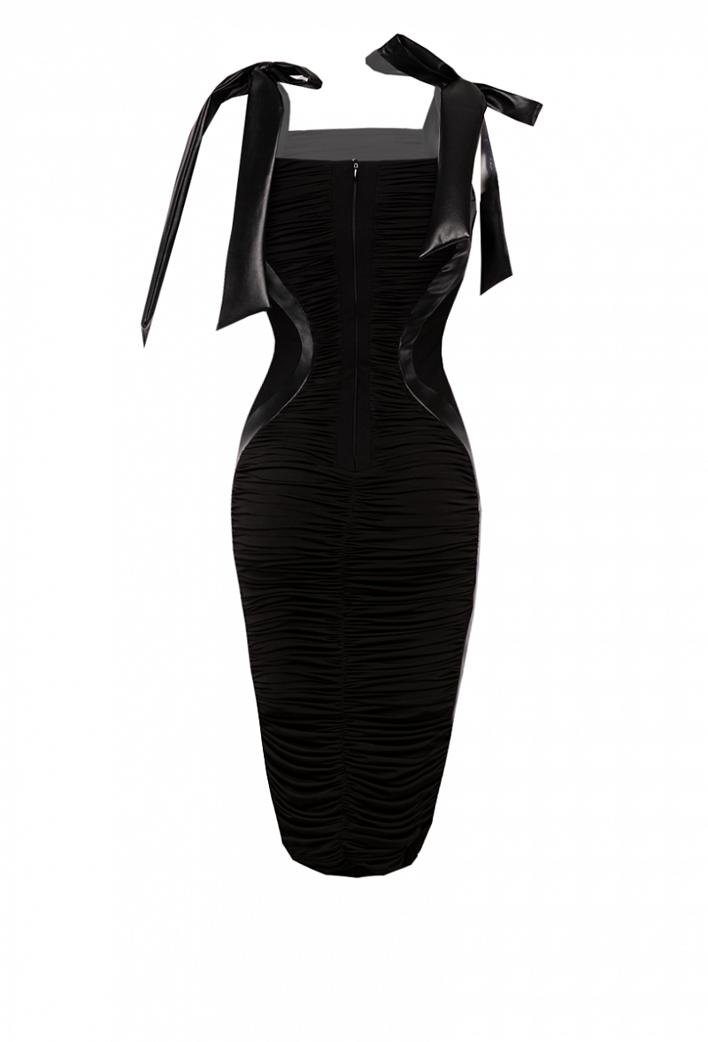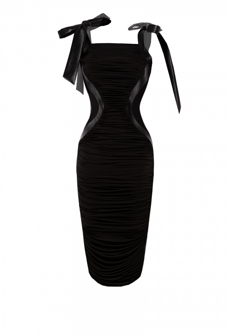 Платье в сборку с боковыми рельефами контрастного цвета.