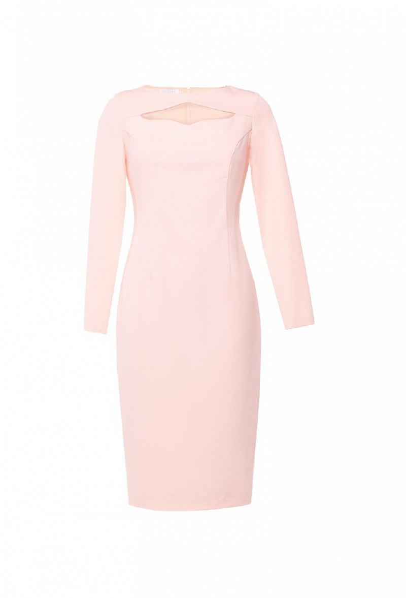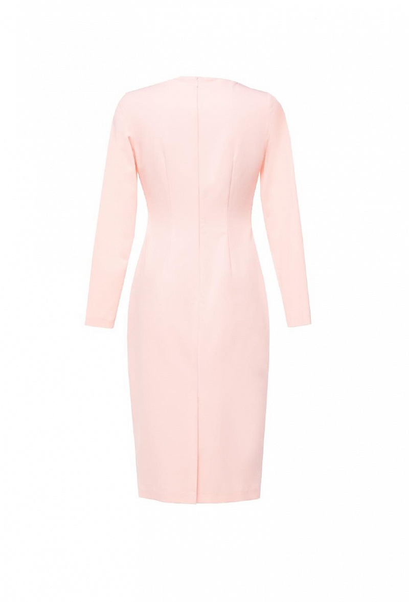 Платье футляр розовое с фигурным вырезом горловины 18-03-19FW
