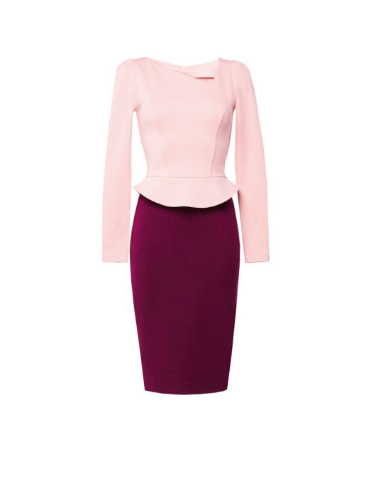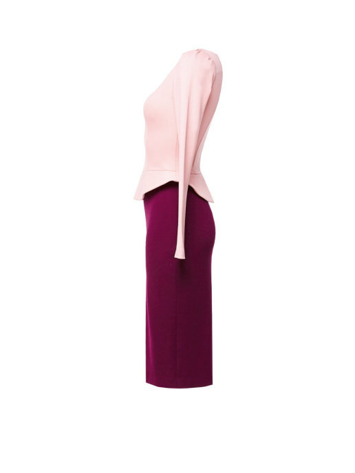 Платье футляр с баской розовое с бордовым 01-02-19FW