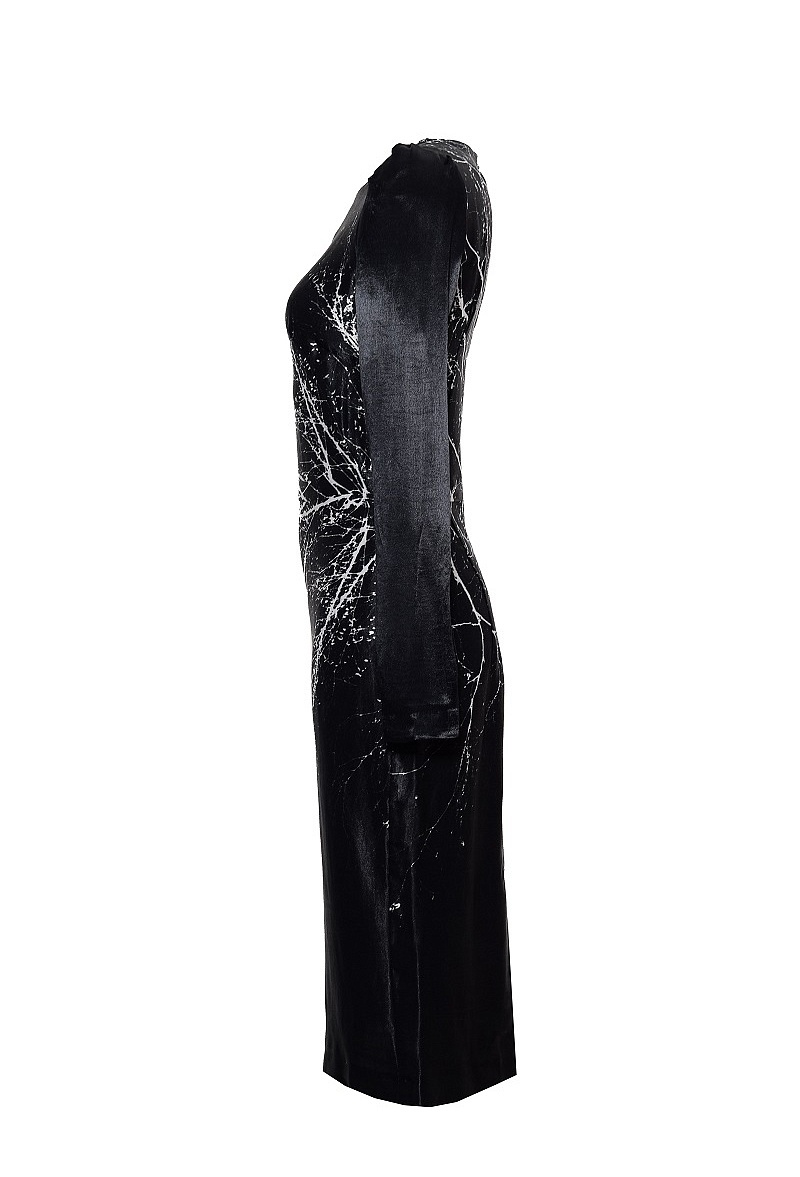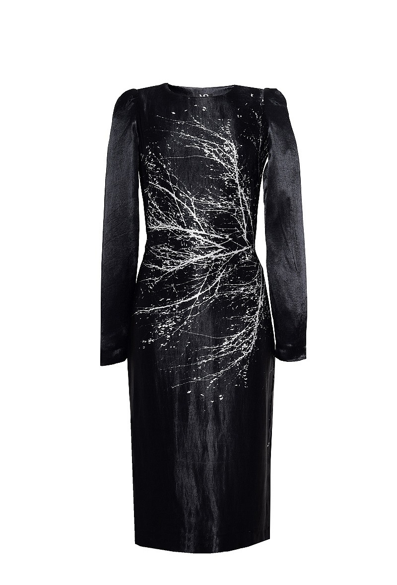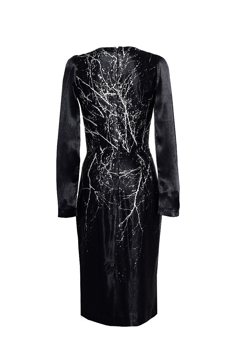 Платье-футляр из вискозы с длинными рукавами и рисунком по всему платью.