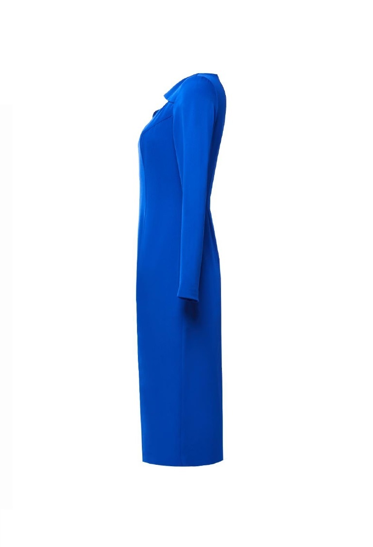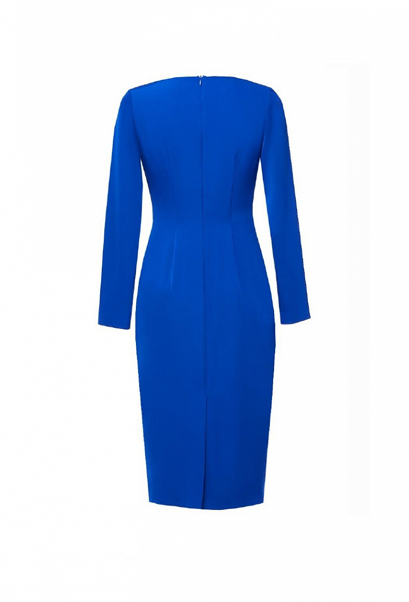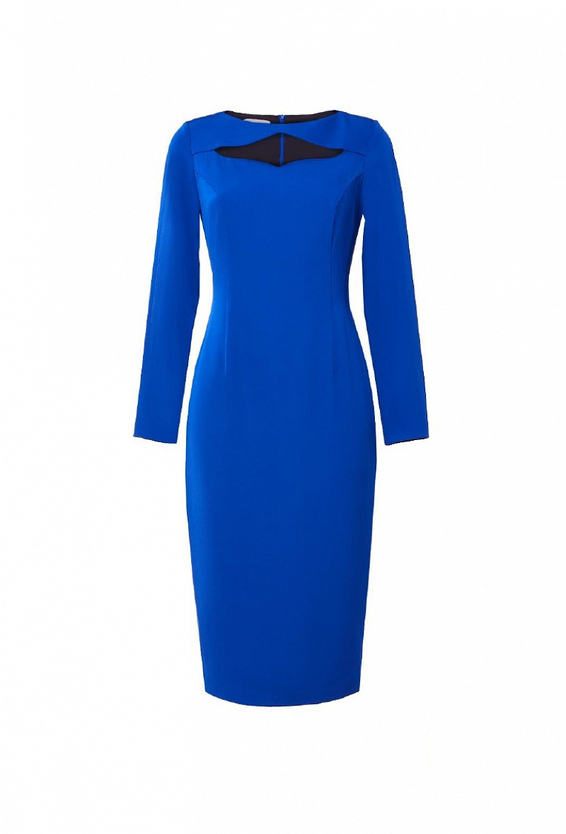Платье футляр синее с фигурным вырезом горловины 18-02-19FW