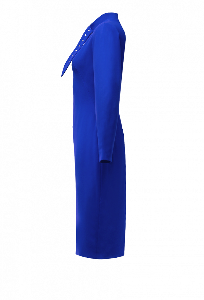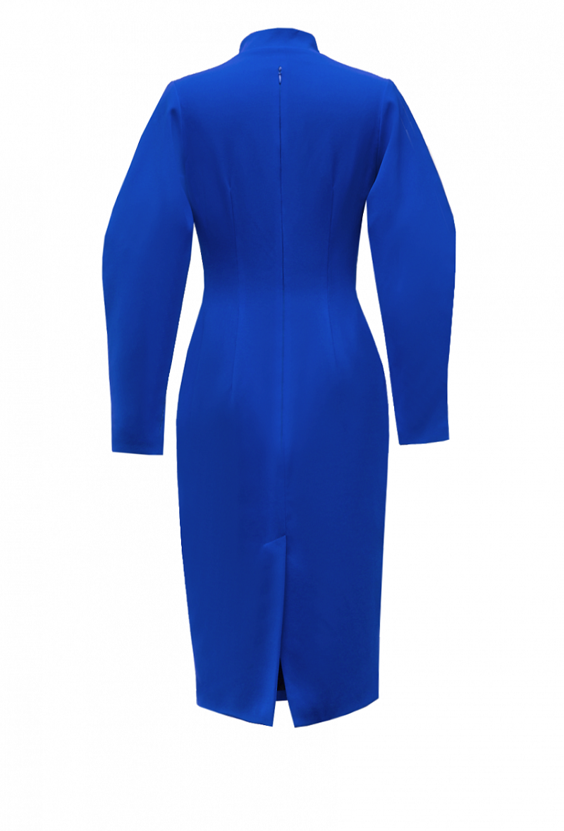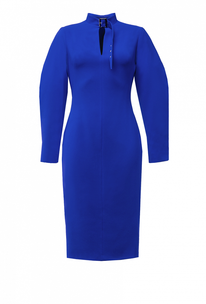 Платье футляр с воротником на ремешке и втачным фигурным рукавом