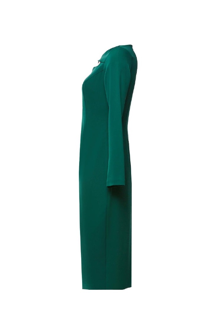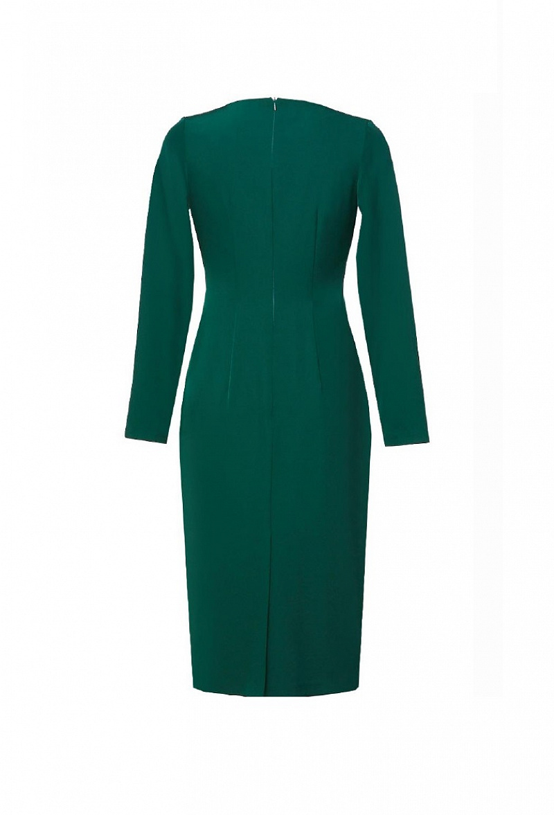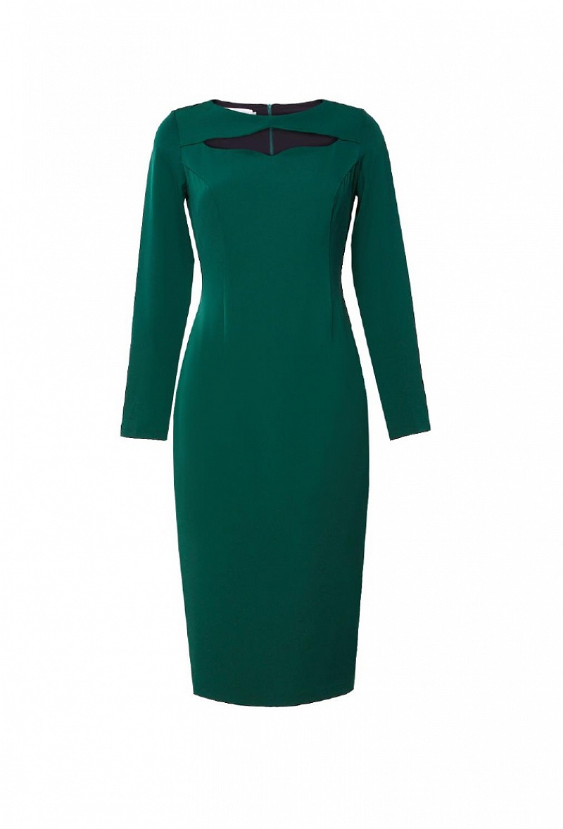 Платье футляр зелёное с фигурным вырезом горловины 18-0519FW