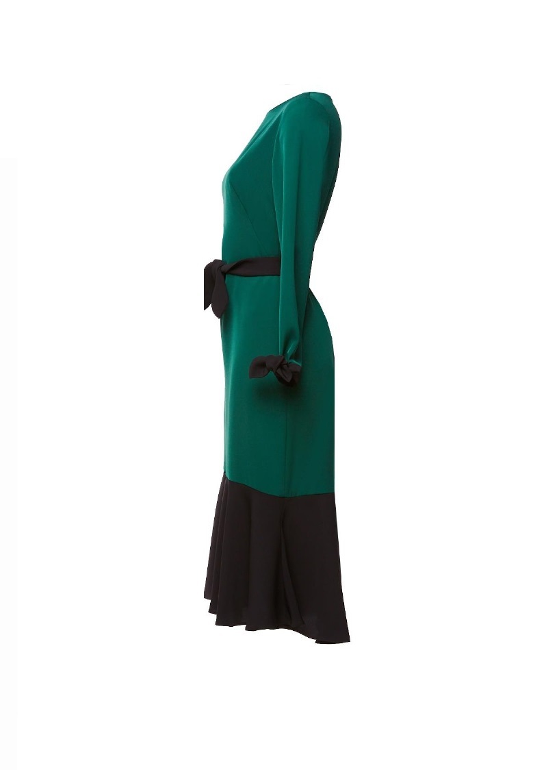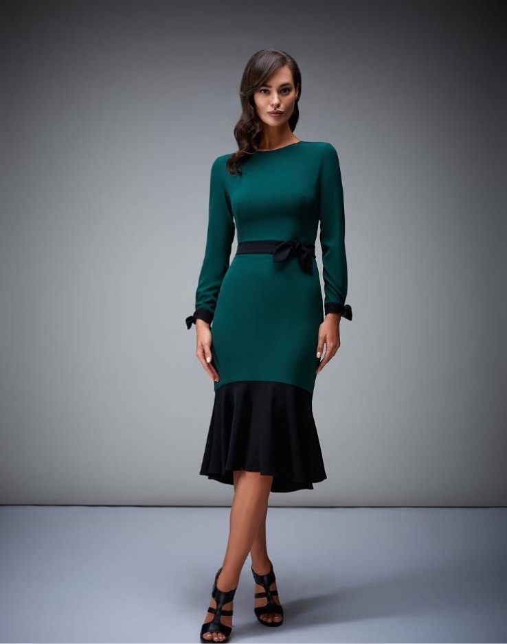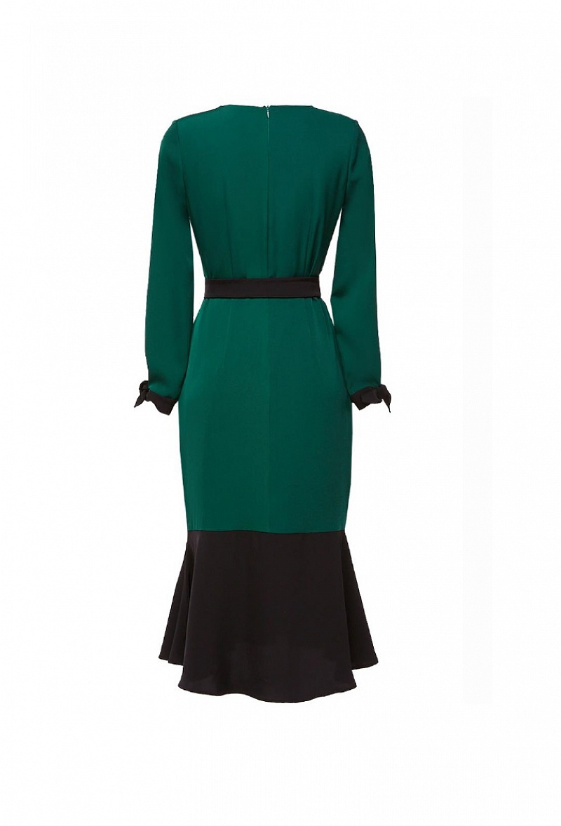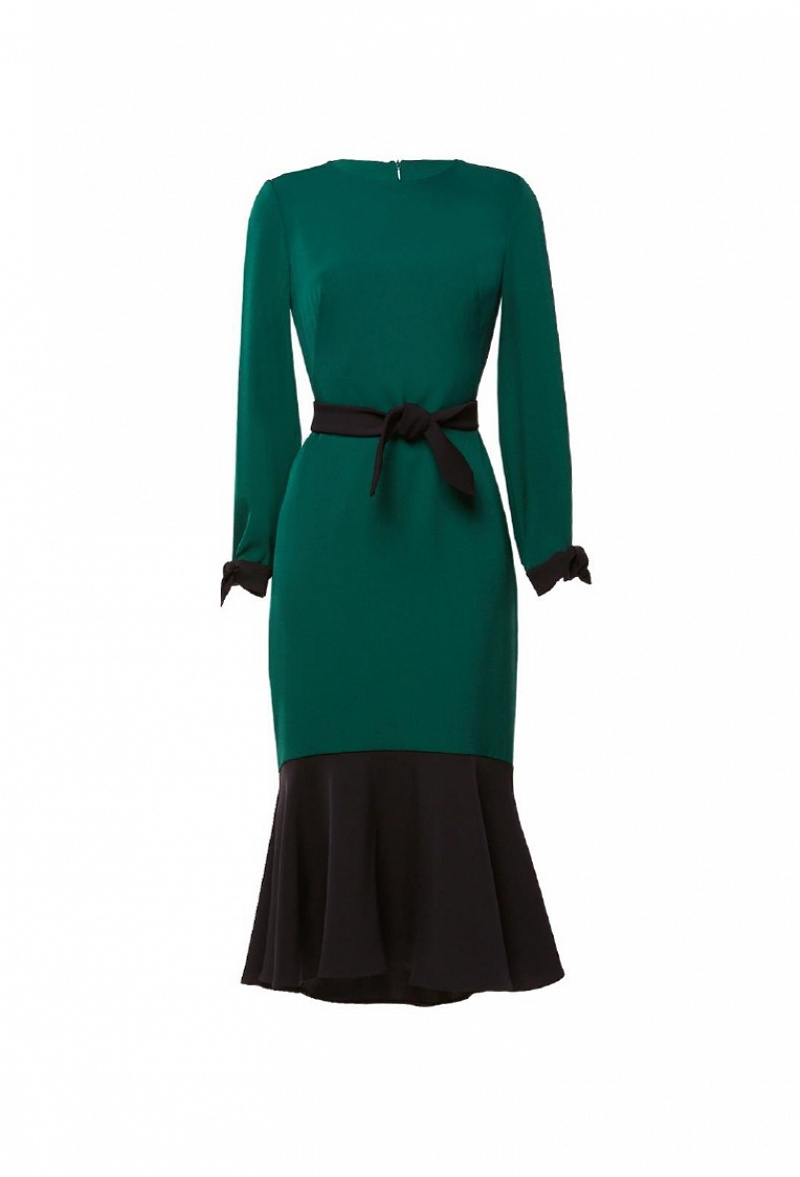 Платье футляр зелёное, юбка с воланом 17-02-19FW