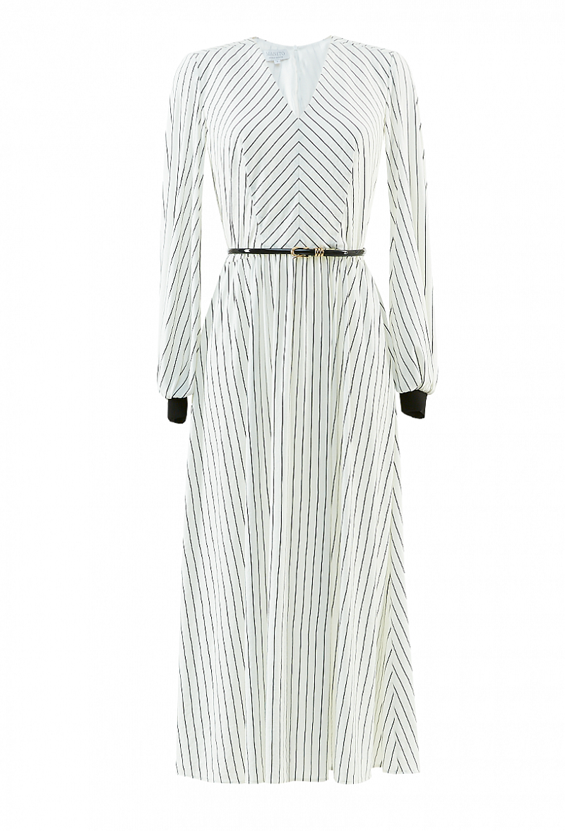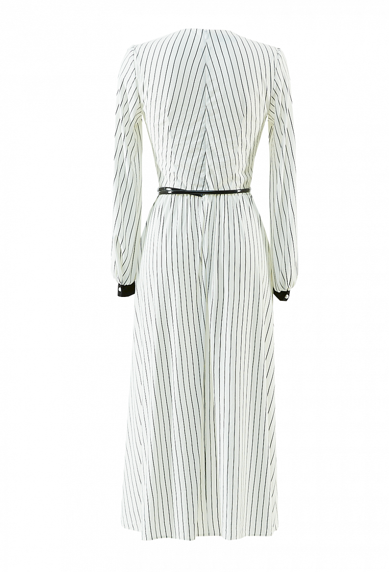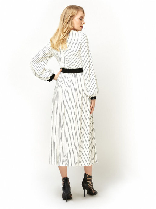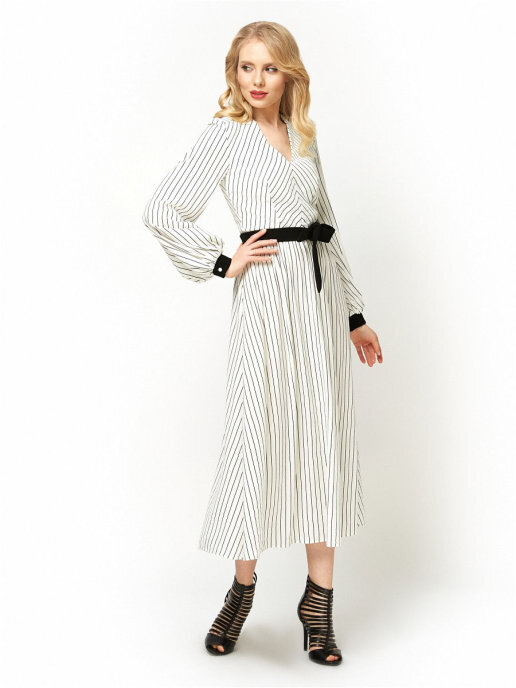 Платье из хлопка- шелка с поясом, с длинным рукавом на манжете. V-образный вырез горловины. Юбка - трапеция (длина 90 см).