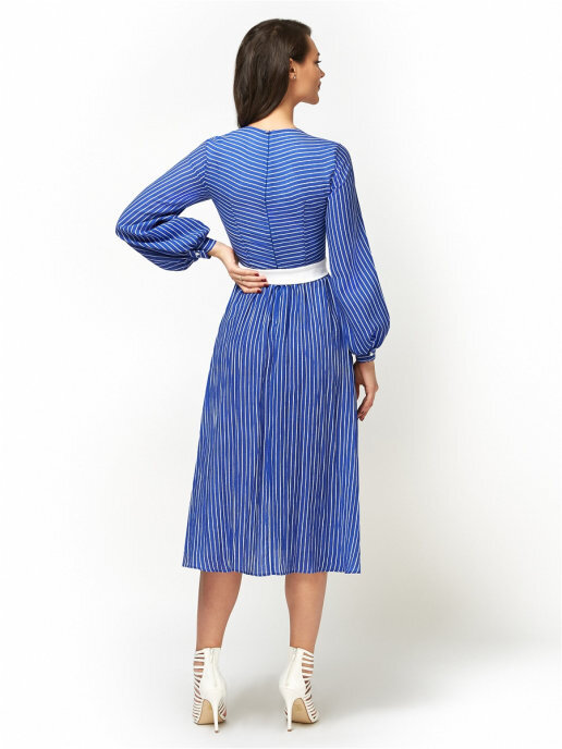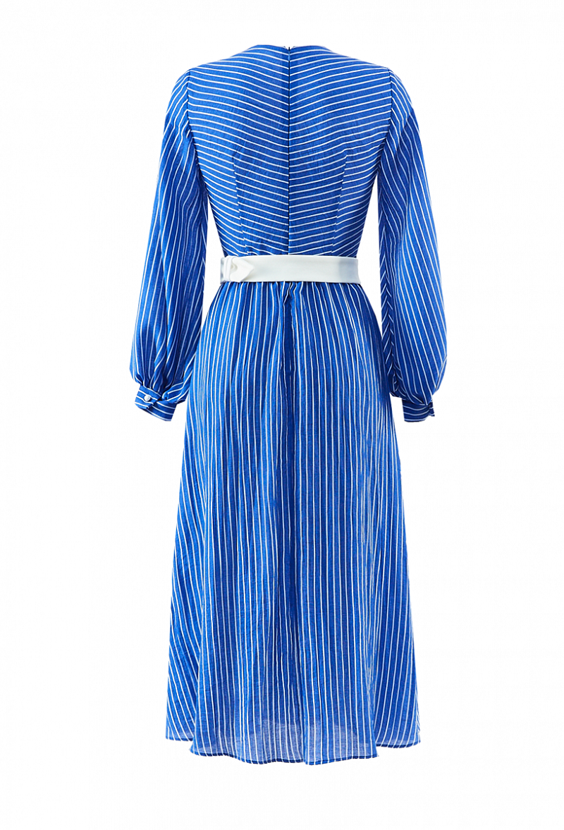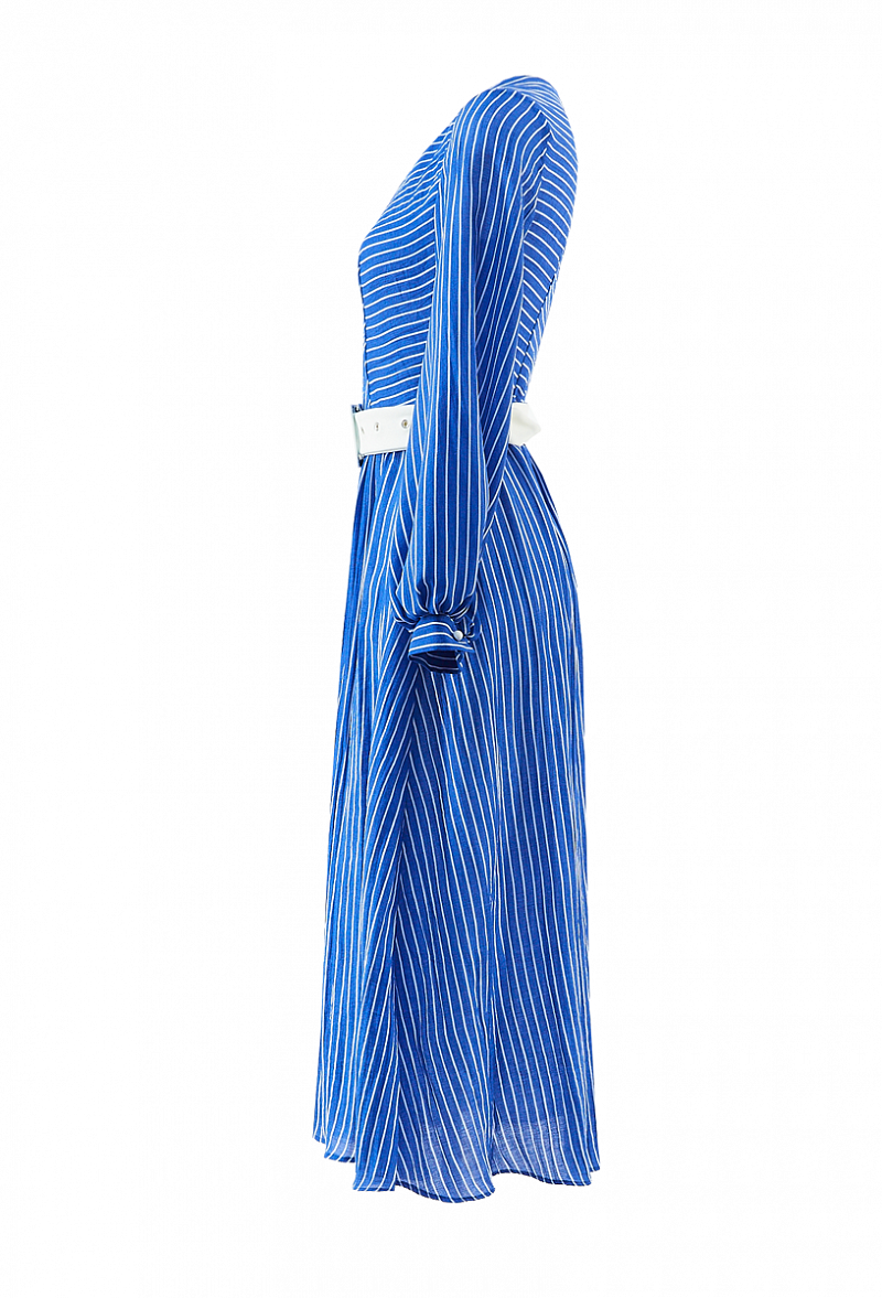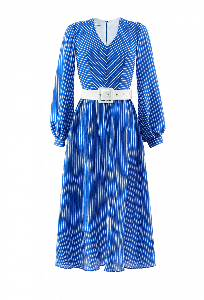 Платье из хлопка- шелка с поясом, с длинным рукавом на манжете. V-образный вырез горловины. Юбка - трапеция (длина 90 см).