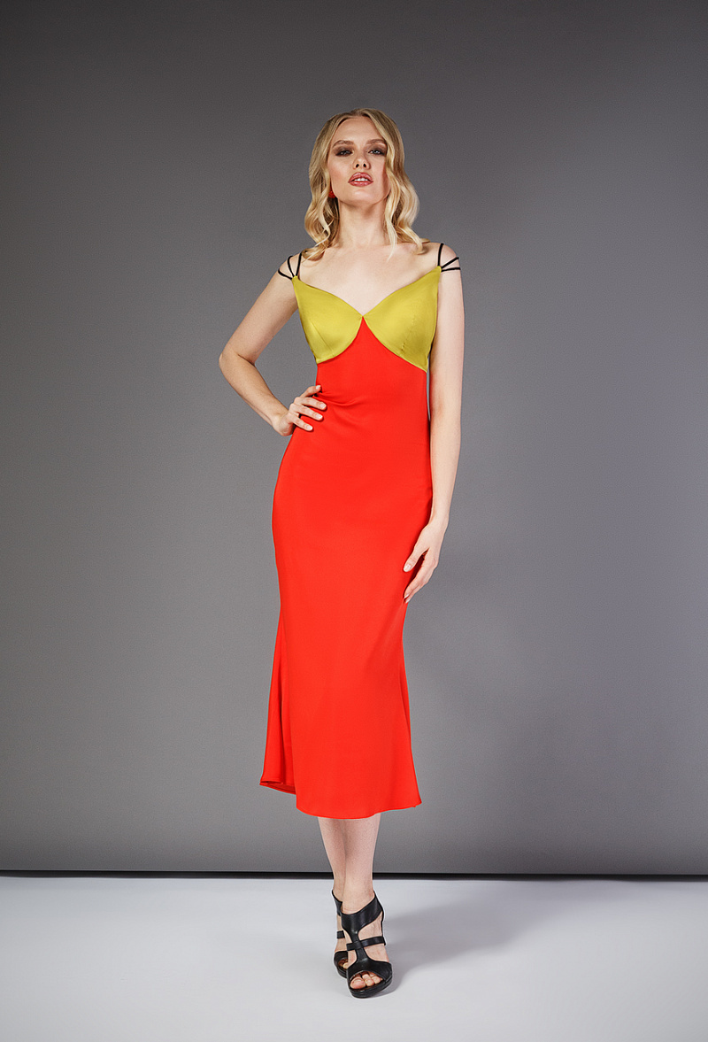 Платье на лямках оранжевое 11-19SS