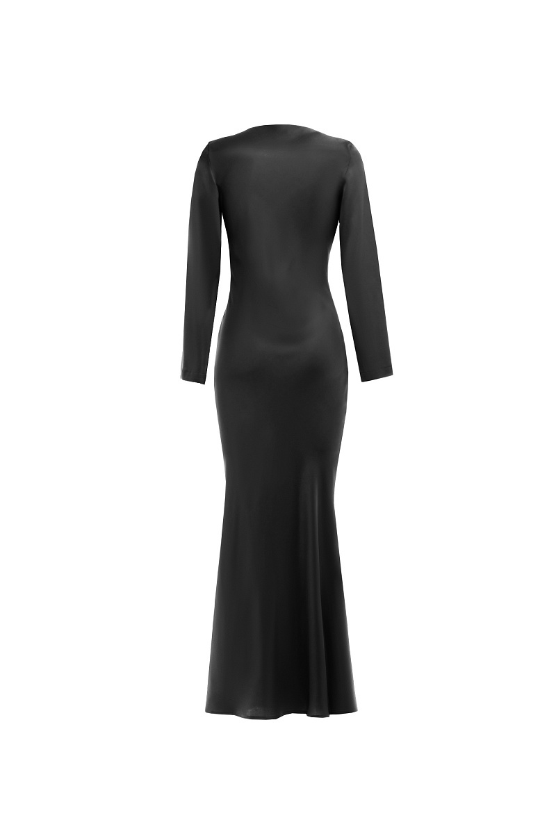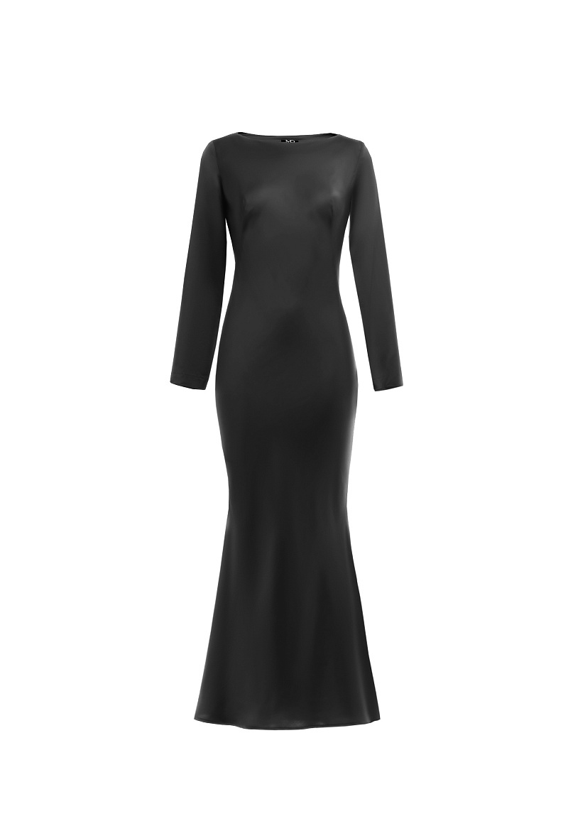 Платье приталенное с длинными рукавами черное 06-02-25 SS