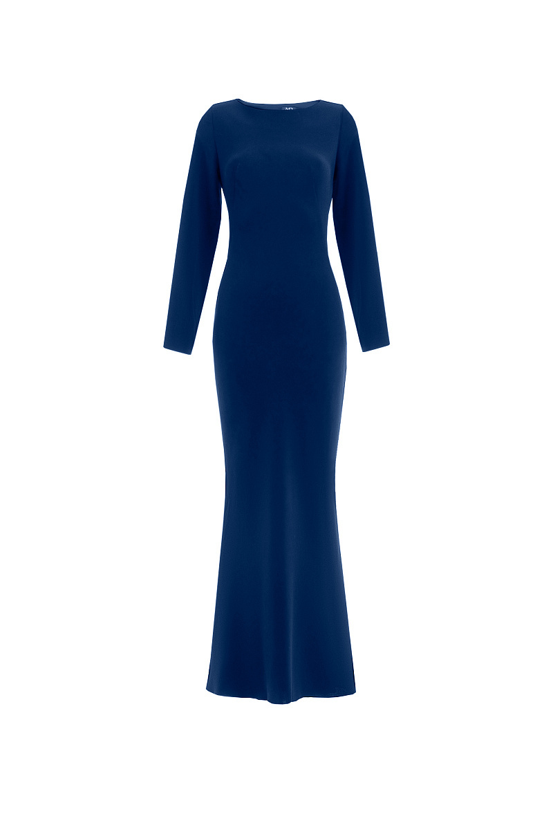 Платье приталенное с длинными рукавами синее 01-01-25 SS